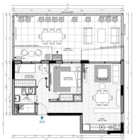 Amplia unidad con cocina americana integrada al living comedor, perfecta para un estilo de vida moderno. Cuenta con dos dormitorios, un baño completo y una espectacular terraza de 41 m², ideal para disfrutar momentos al aire libre.