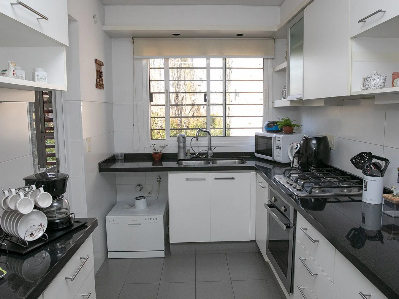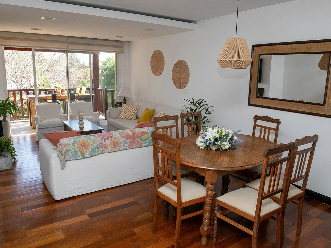 Living comedor con vista despejada y salida a amplia terraza con parrillero. Toilette. Cocina equipada con anafe, horno y campana. Lavadero. 3 dormitorios con amplios placares, principal en suite. Pisos de madera en toda la planta. Dos cómodos garajes individuales y box.