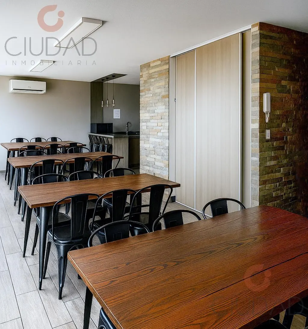 La unidad cuenta con un dormitorio muy amplio y  living-comedor con ventanal . Ambos ambientes tienen aire acondicionado, lo que asegura tu confort todo el año. La cocina integrada es moderna y funcional, perfecta para quienes disfrutan de un espacio unificado.