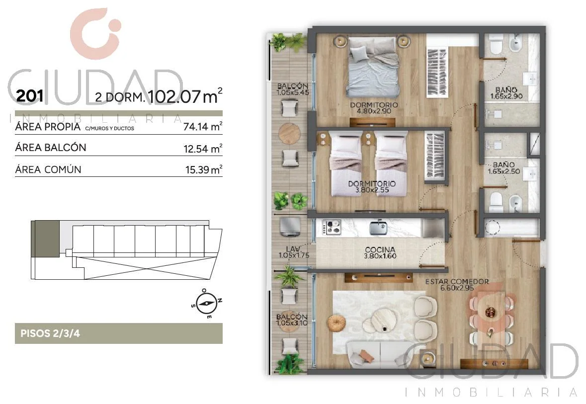 - 2 Baños completos