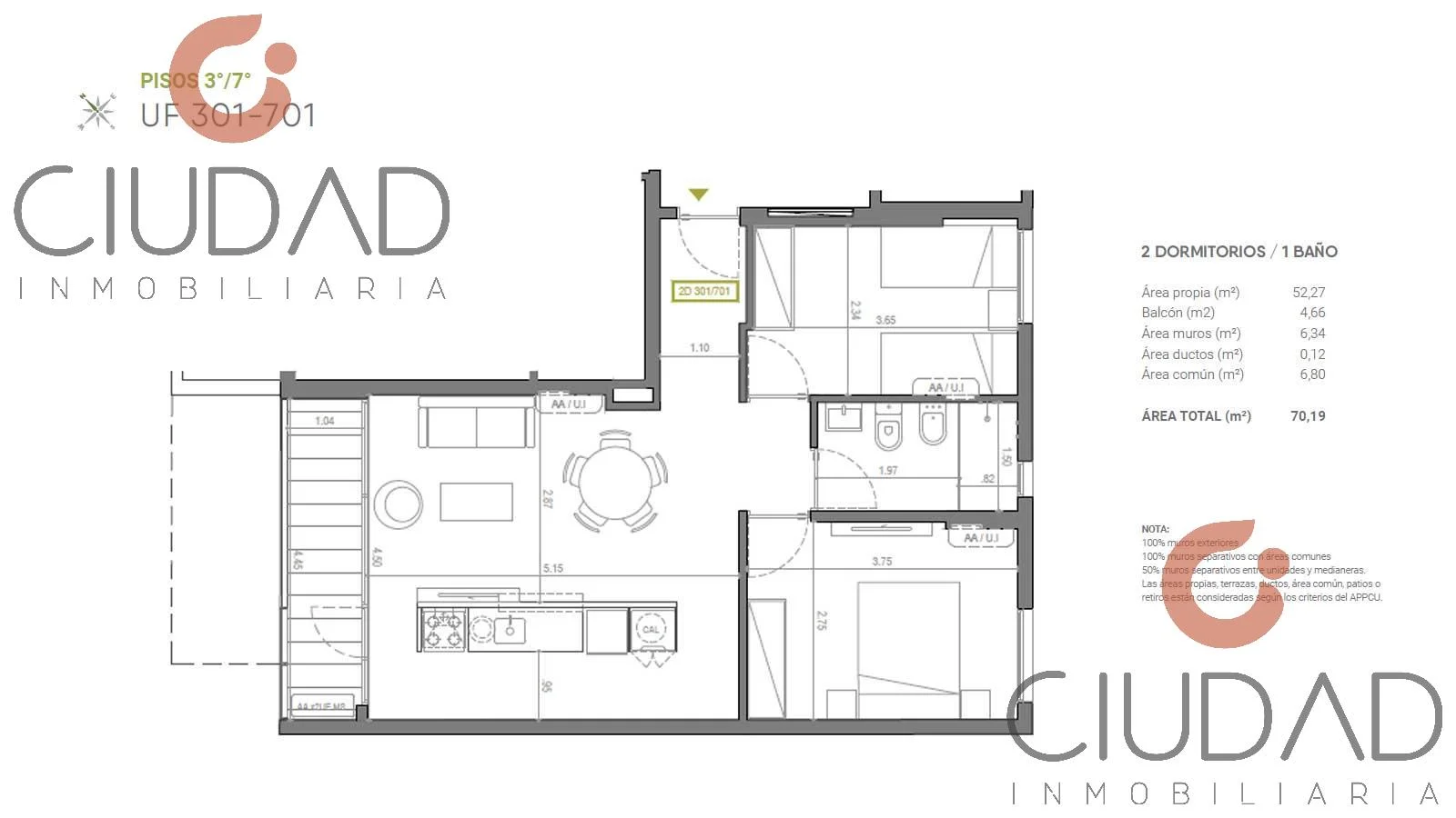R$ ~849,000 / + $ 6,500 gastos comuns / U$S 2,314/m2