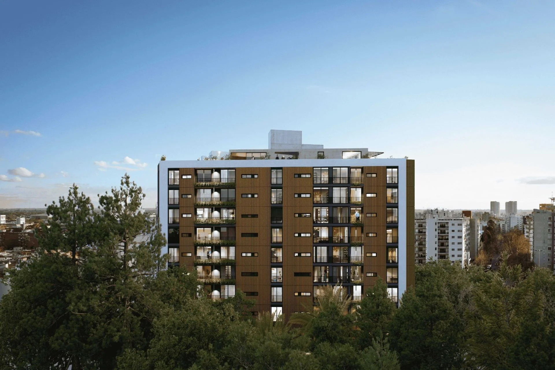 El diseño del proyecto prioriza la apertura hacia la naturaleza: genera vistas despejadas hacia la arboleda, logrando mayor privacidad, calma y una conexión real con el entorno.