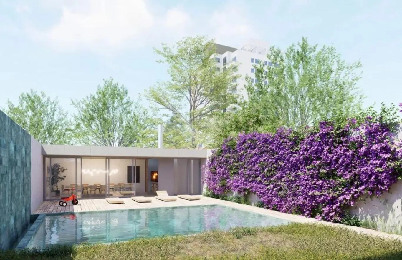 medianera este, generando vistas abiertas hacia tres frentes: norte (al frente), este (lateral) y sur (al corazón de manzana).