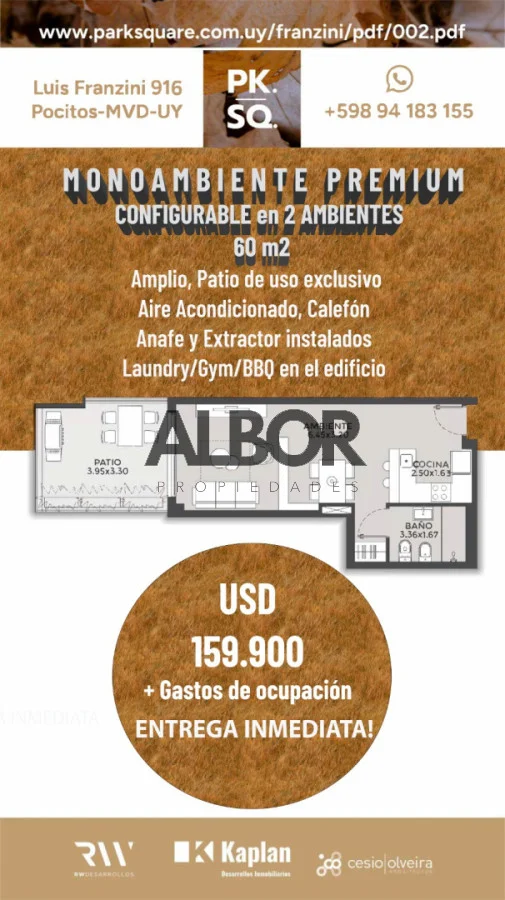 Venta apartamento monoambiente 2 en 1 c jardín - Park Square Sarmiento