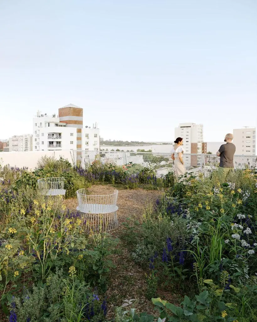 La secuencia de espacios comunes es coronada por dos generosas azoteas de más de 100m2 cada una, con generosas vistas, en la cubierta de ambos volúmenes.