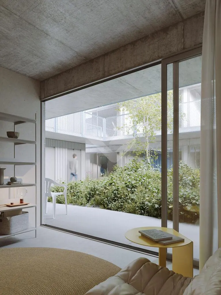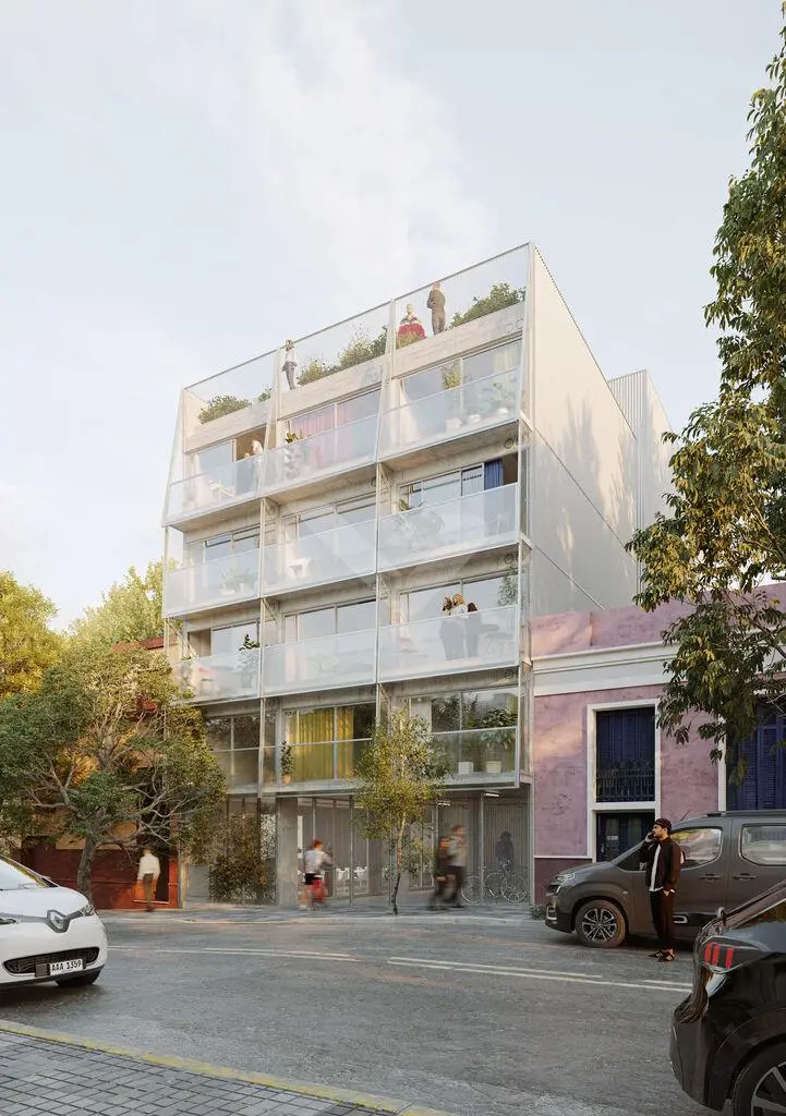 Todos los departamentos integran espacio exteriores ( patio y jardín central e el primer piso, balcones en las plantas superiores).