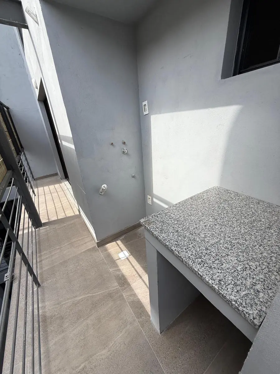 Entrada a living comedor amplio con cocina integrada, orientado al oeste recibe el sol en la tarde. Salida a balcón cómodo con istalación para lavarropas y parrillero.