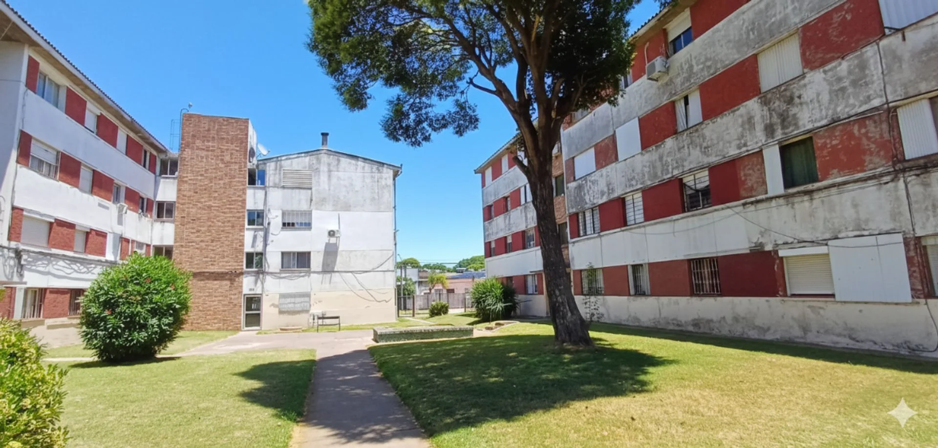 Se vende apartamento en planta baja en La Teja, ubicado dentro de un complejo cerrado y enjardinado de blocks de 4 pisos, construido en 1970, que cuenta con salón comunal.