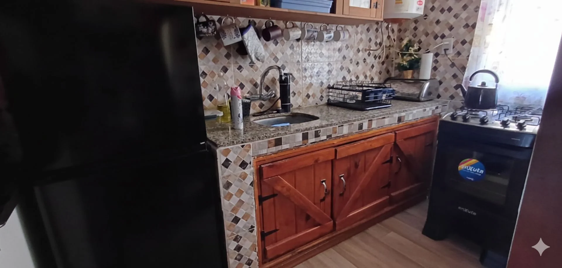 -Cocina definida con muebles aéreos y bajo mesada, y conexión para calefón