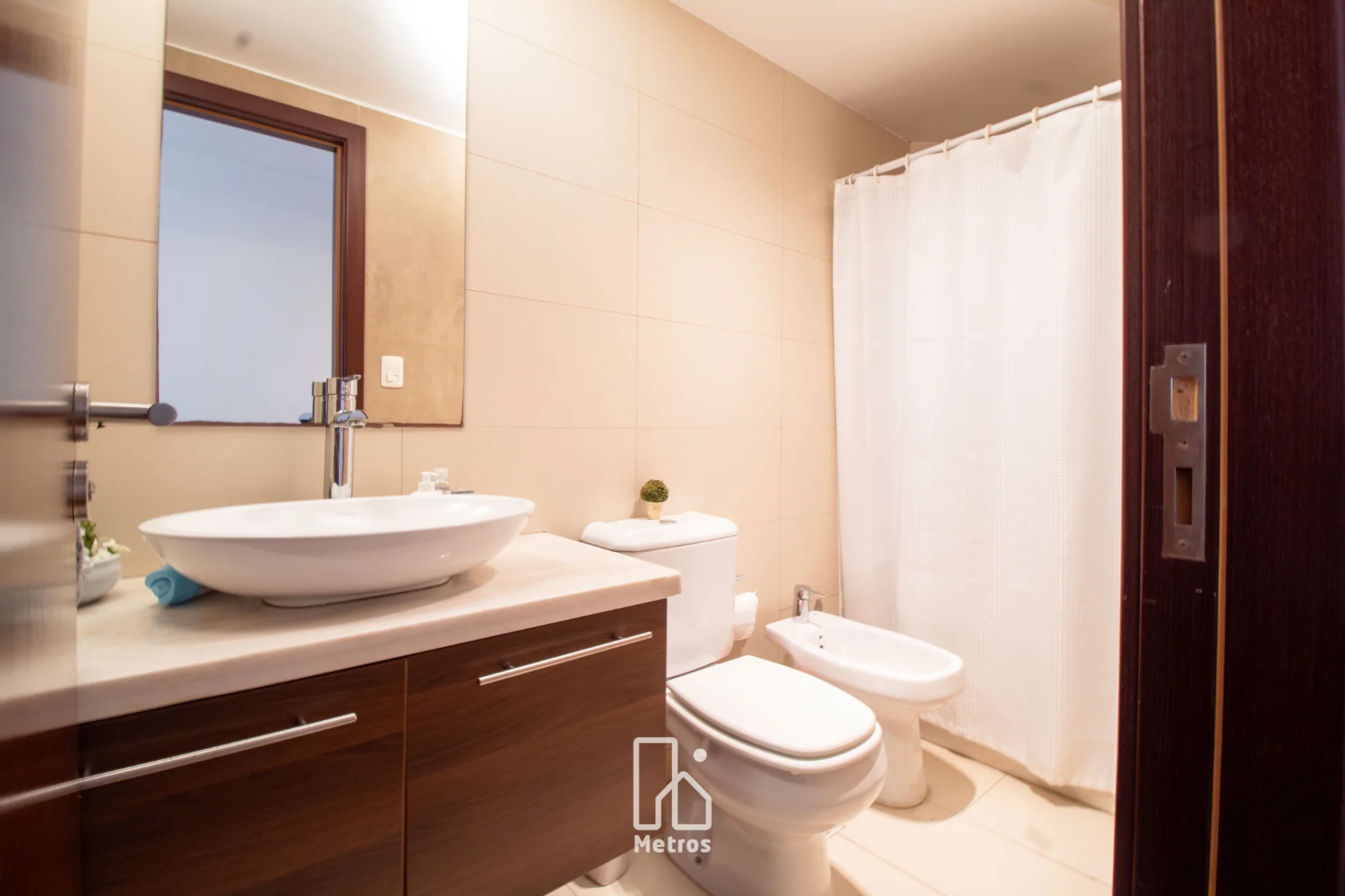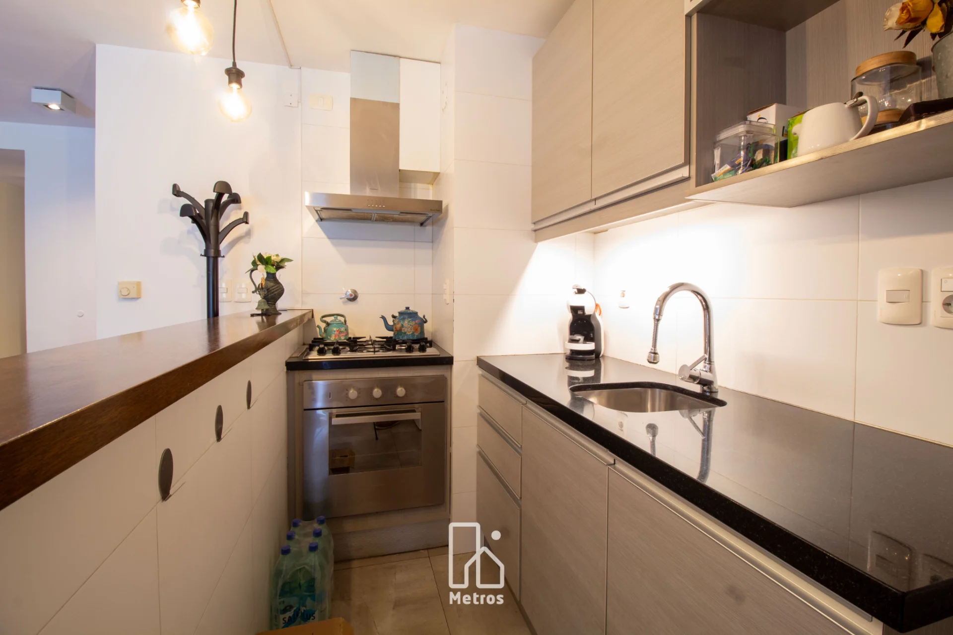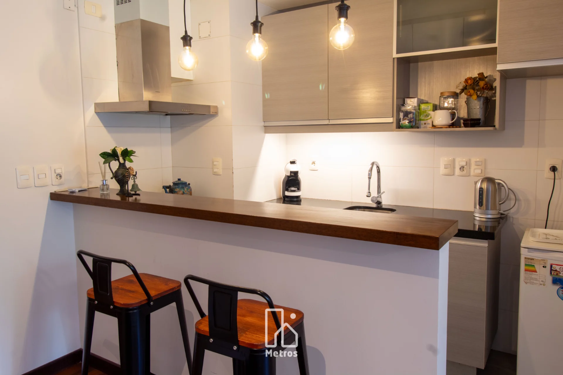 Luminoso y amplio apartamento con gran living comedor y cocina integrada con barra desayunador.