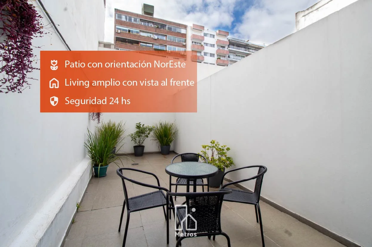 Amplio living comedor • Cocina integrada con desayunador • 2 baños • 1 dormitorio con amplios placares • Gran patio de uso exclusivo • Vista abierta al frente