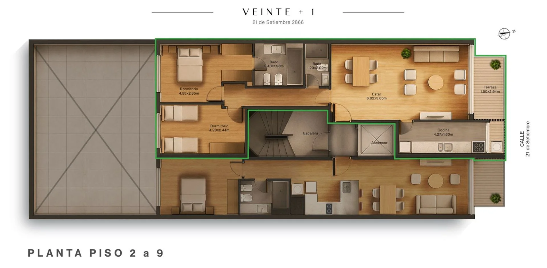 Todas las unidades cuentan con balcon y se orientan al frente de la calle 21 de setiembre.