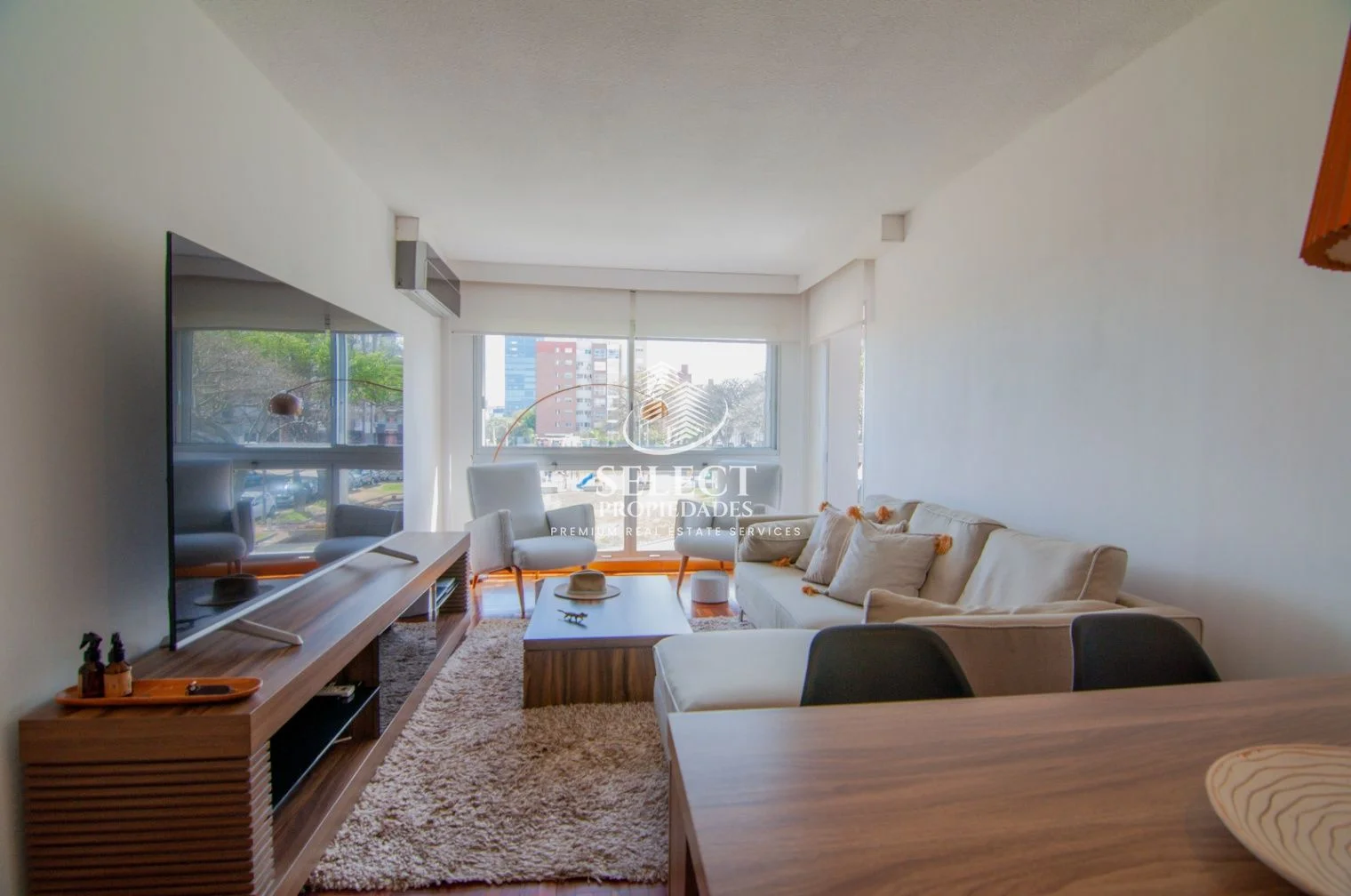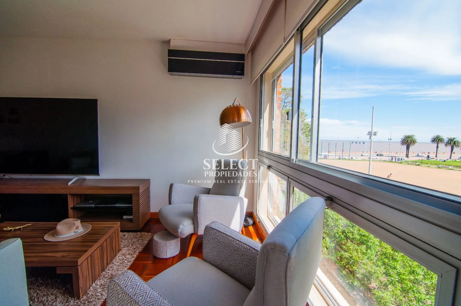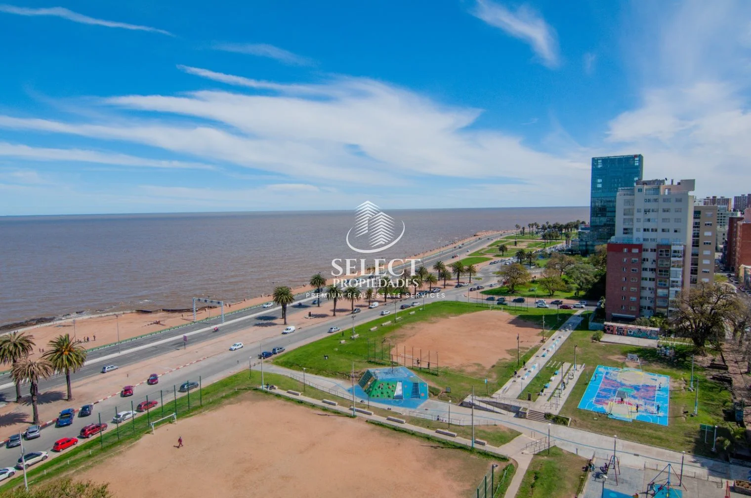 Se vende apartamento, ubicado en edificio de primera línea sobre la Rambla de Palermo, con orientación norte al frente y oeste al lateral, ambas con vistas parcialmente despejadas.