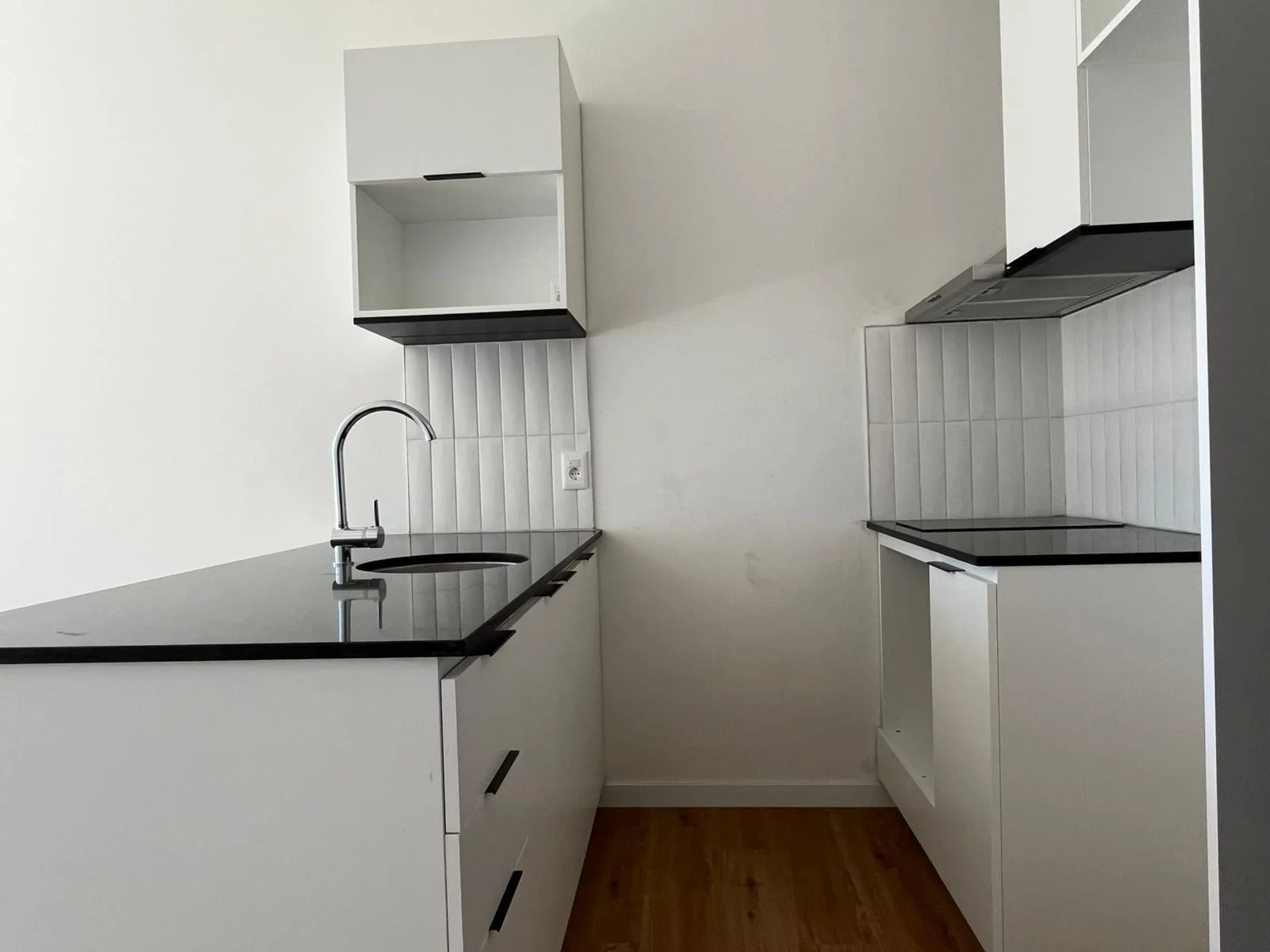 Cocina integrada que se entregará con muebles sobre y bajo mesada, con campana extractora y anafe.