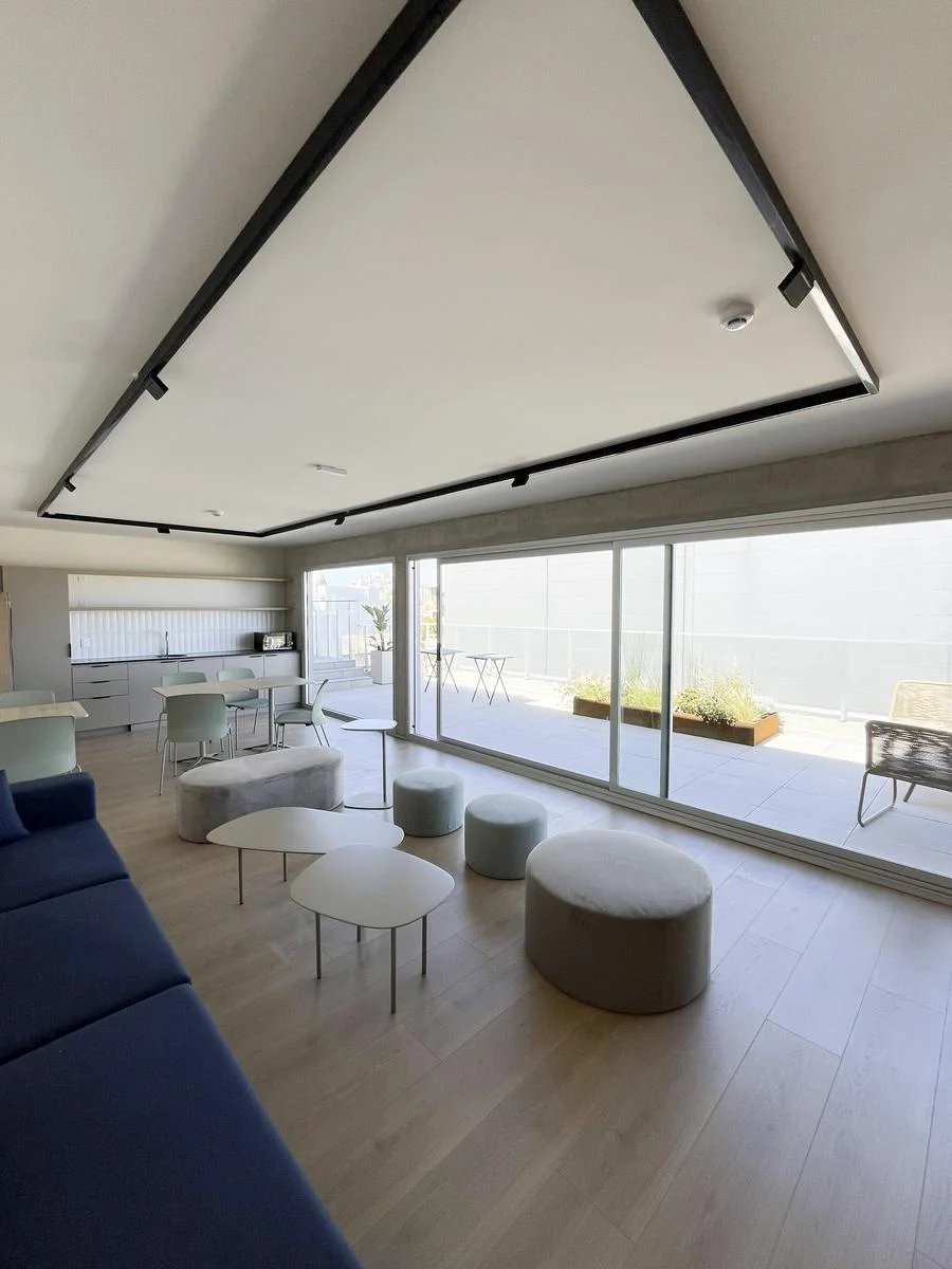 Espacios comunes amplios, 620m2 de amenities. Terraza Sky con WIFI pensado para un estilo de vida moderno y cómodo, con Parrilleros, Co-Living, Laundry, Solarium y Gimnasio totalmente equipado. Contará además con una Plaza con vegetación variada y Espejo de agua ideal para relajarse y refrescarse.