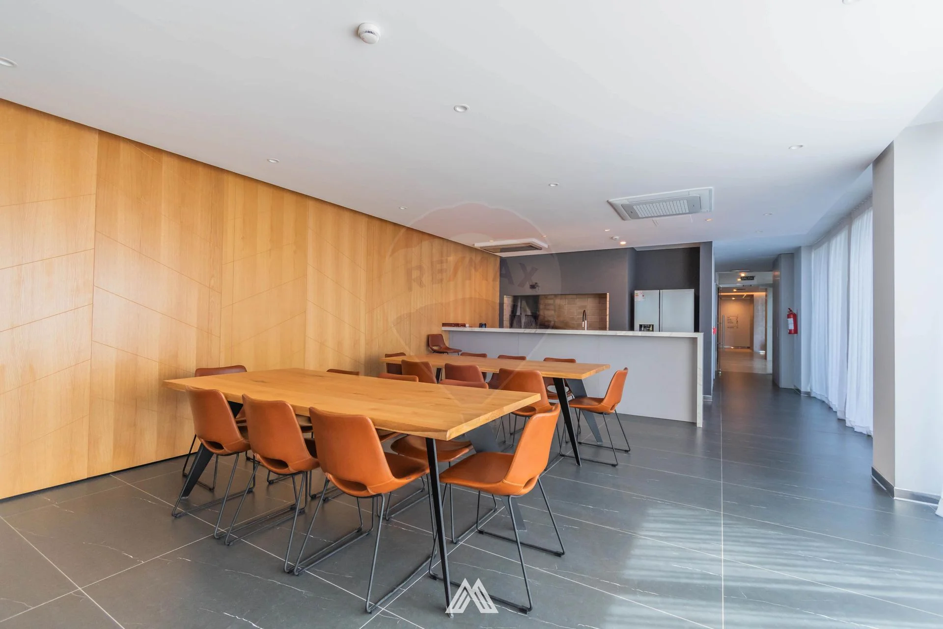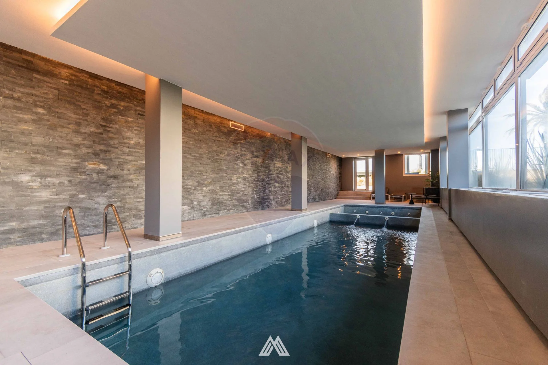 El edificio ofrece amenities premium: piscina interior climatizada, sauna y sala de masajes, gimnasio, salón de belleza, barbacoa y salón de eventos.
