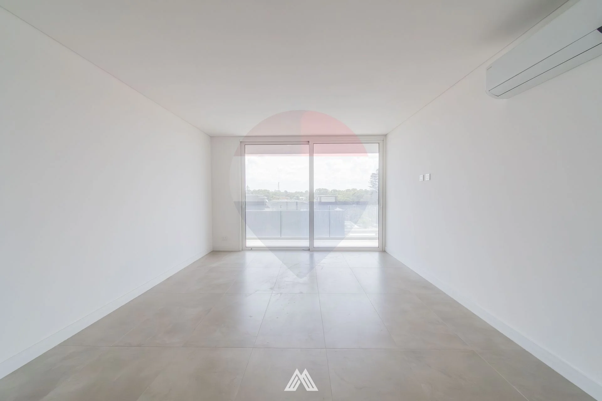 El dormitorio cuenta con vestidor y acceso directo a la terraza. Baño completo. Posibilidad de independizar el área social, transformando el dormitorio en suite.
