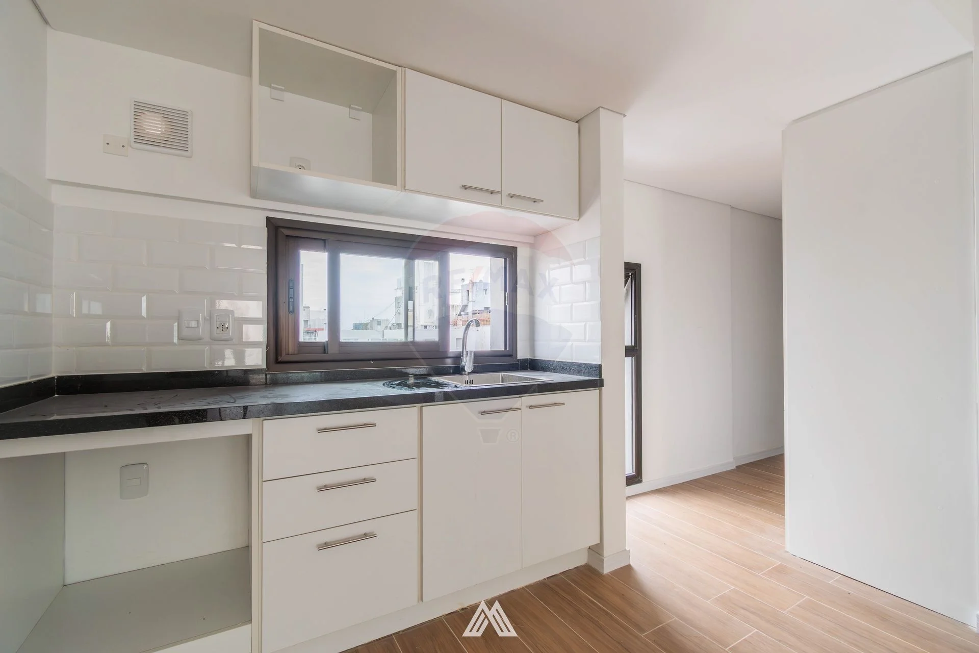 Sobre el acceso encontramos la cocina con ventana hacia el contrafrente, luego encontramos el área de living comedor con salida a la terraza frontal.