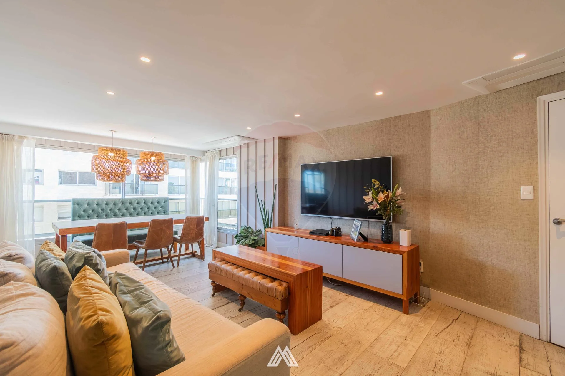 La planta ofrece un amplio living-comedor, fácilmente sectorizable en área de living, comedor formal y espacio de TV, además de un baño social. Pisos de lapacho.