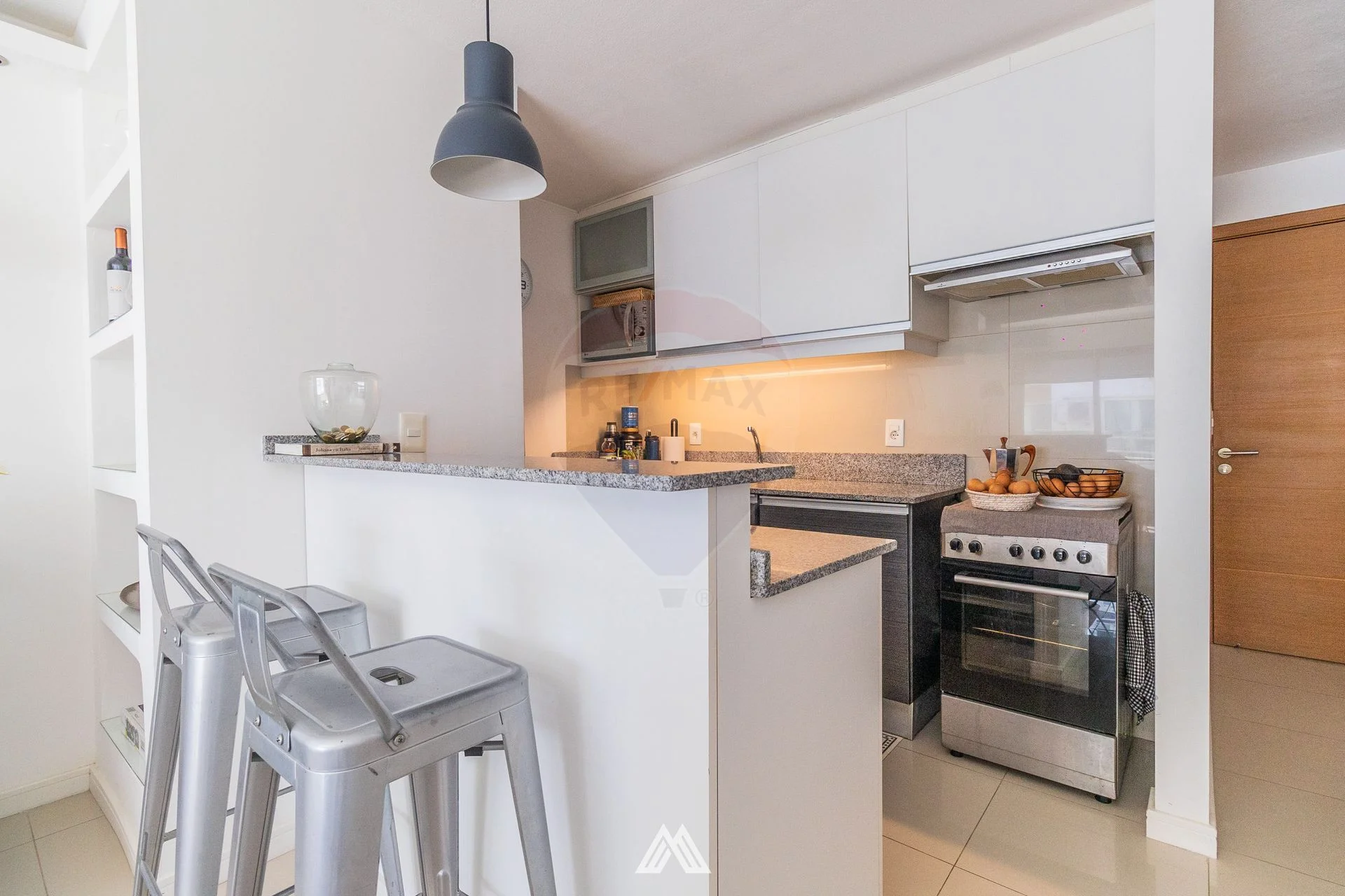 La unidad se encuentra en el primer piso y se distribuye de la siguiente manera: al ingresar nos encontramos con cocina integrada al living a través de una barra.