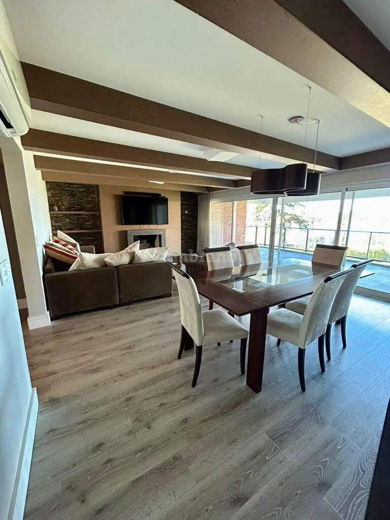 Cuenta con un espectacular living comedor con estufa a leña, comedor y una terraza muy amplia con parrillero.