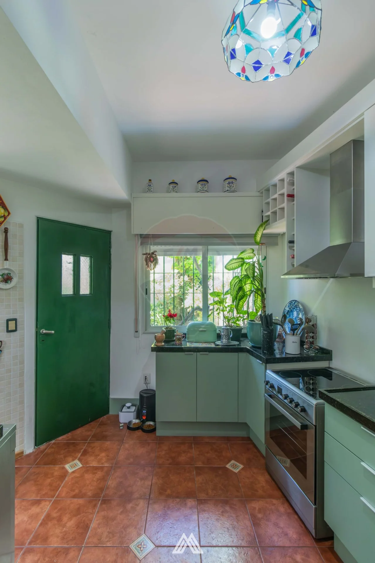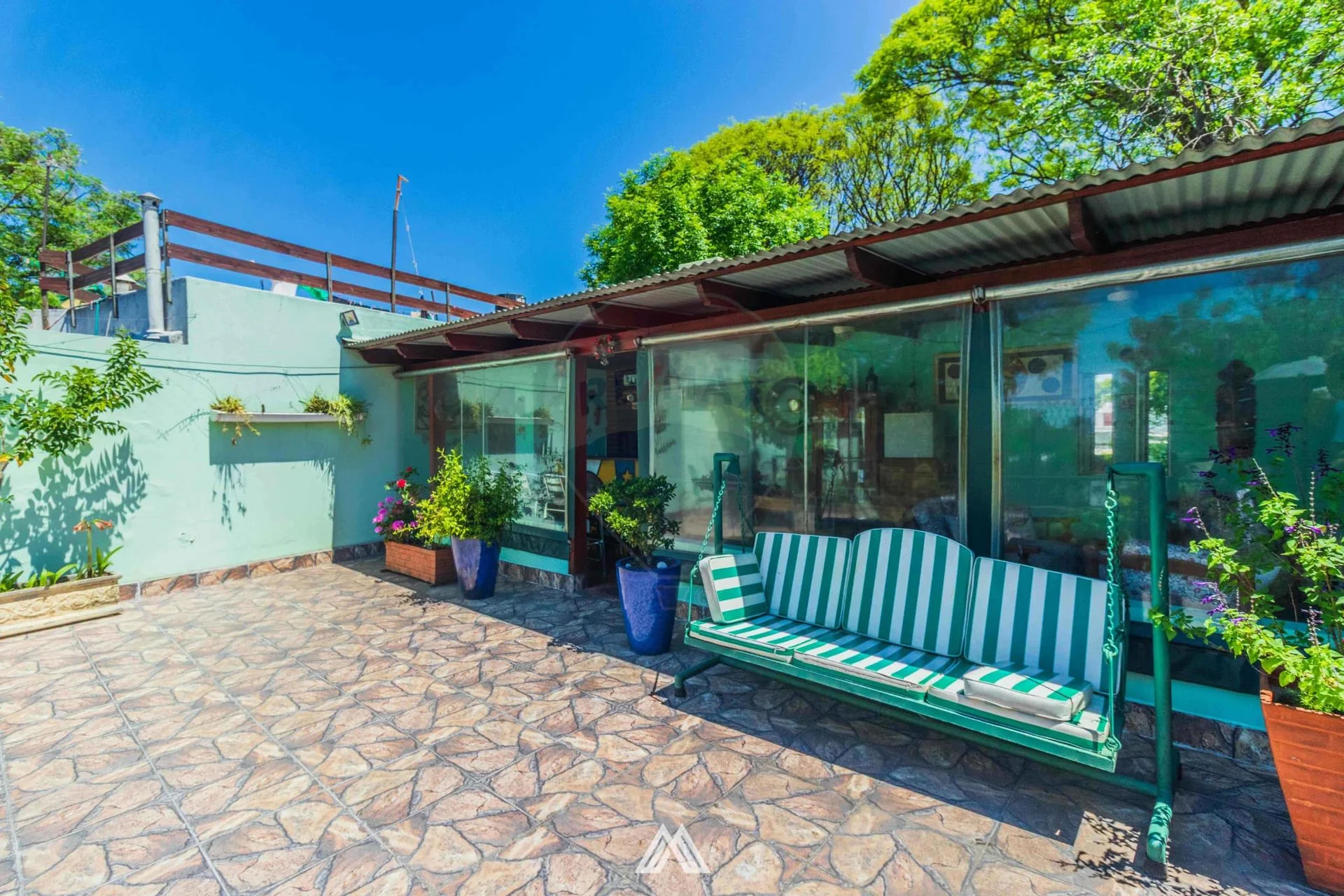 Por medio de la cocina, se accede al patio donde se encuentra una sala de lavado con conexión para lavarropas, y la escalera para acceder a la planta superior.