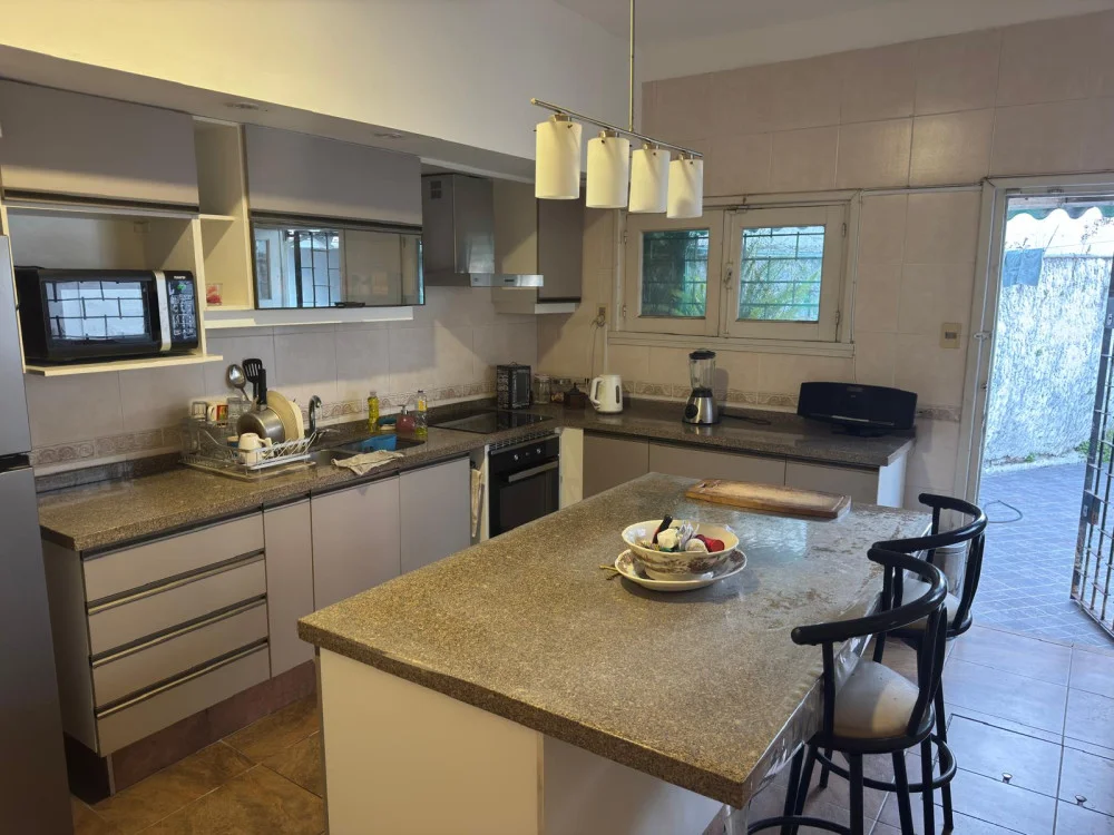 En planta baja living-comedor con hogar con ventanal al fondo. Amplia cocina semi equipada con isla y salida a fondo. El fondo cuenta con barbacoa, baño completo y kitchenette.