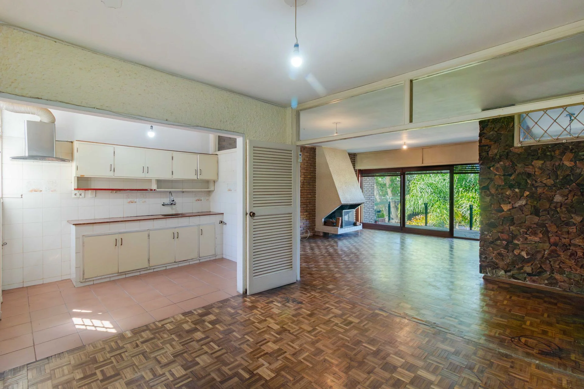 • Living comedor con estufa a leña y terraza