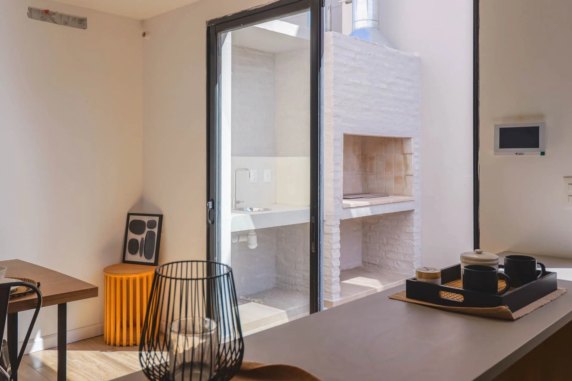 Patio con parrillero, orientación norte recibiendo toda la luz del día, proporcionando más amplitud, iluminación y ventilación natural a la propiedad.