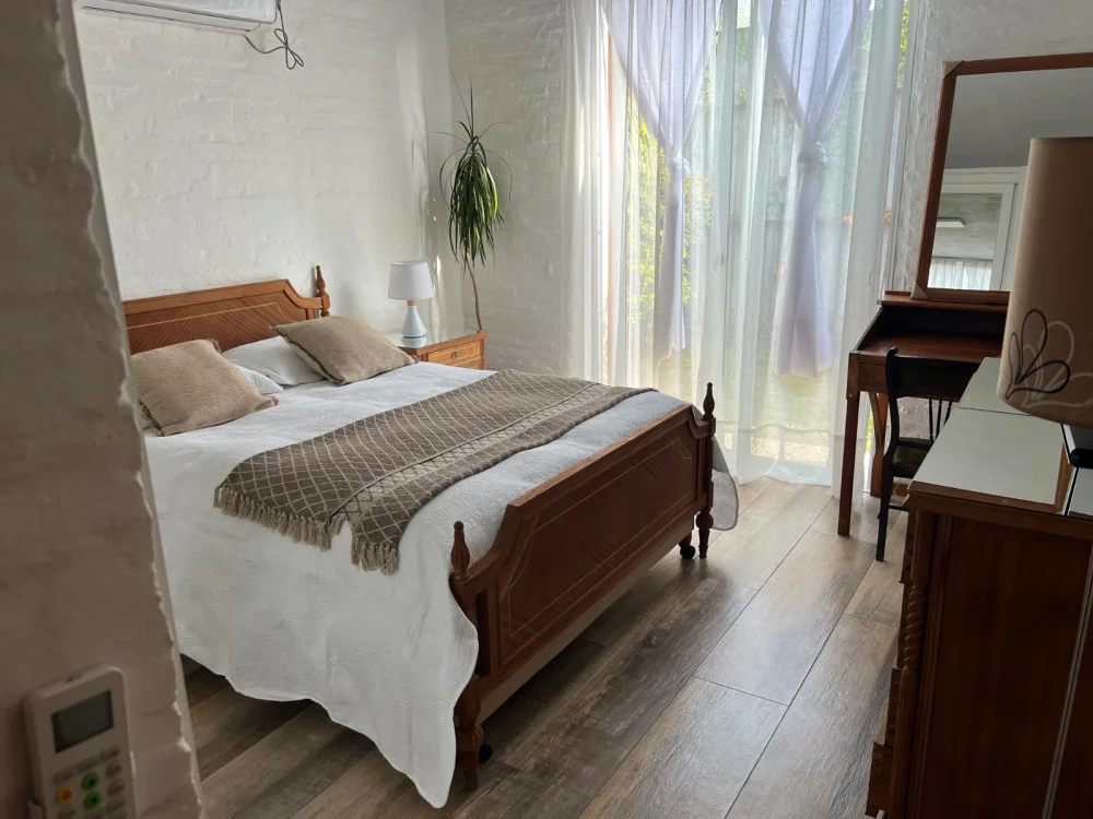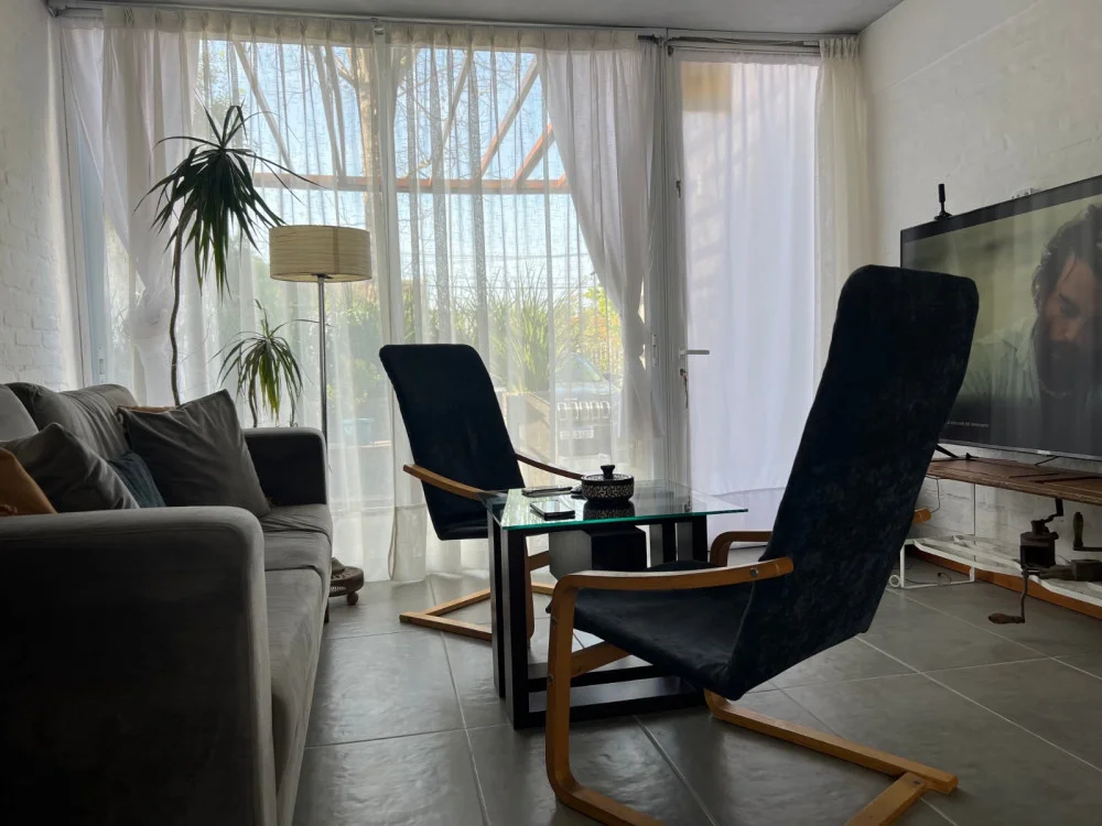 Living-comedor con cocina integrada, estufa de alto rendimiento, y equipo de aire acondicionado. 2 amplios dormitorios con placares, tercer dormitorio chico o escritorio. Hermoso baño principal y otro de uso social junto al parrillero. Amplio frente enjardinado con lugar para varios autos, rejas perimetrales. Lindo patio con parrillero y enjardinado. La casa tiene entrada lateral peatonal. Pronta para entrar!!