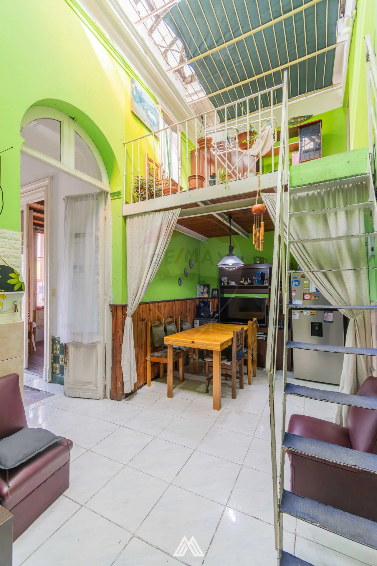 - Estar comedor en doble altura con claraboya.
