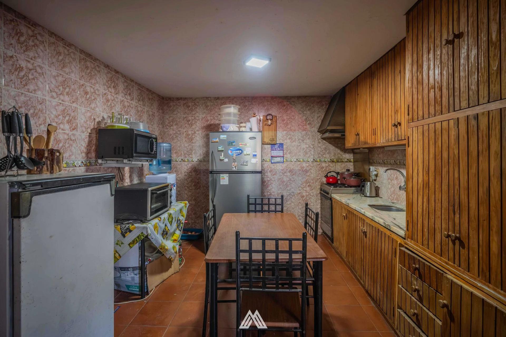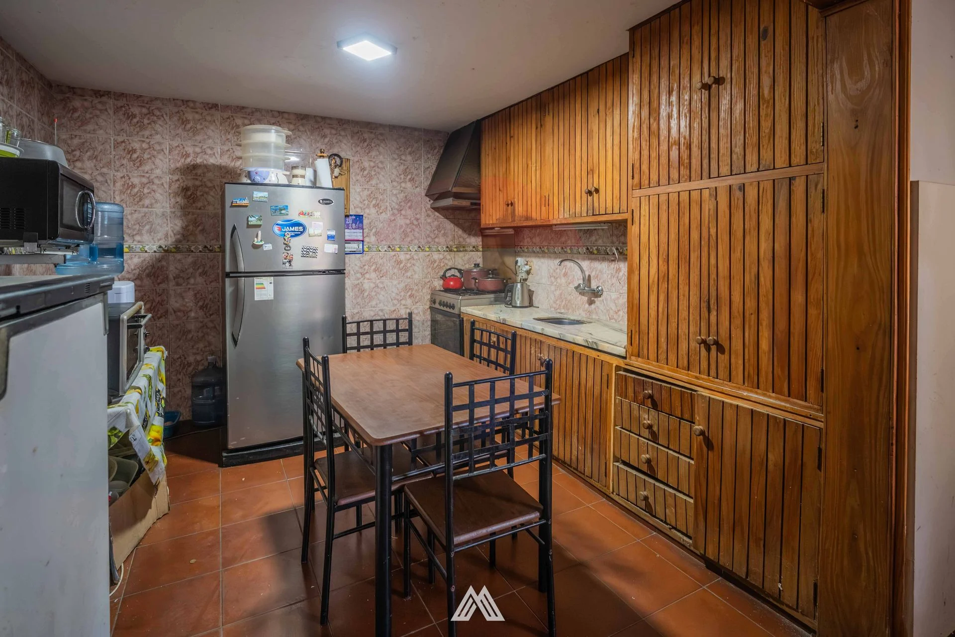 La cocina comedor, de buenas dimensiones, dispone de excelentes espacios de guardado, con alacena y muebles aéreos y bajo mesada.