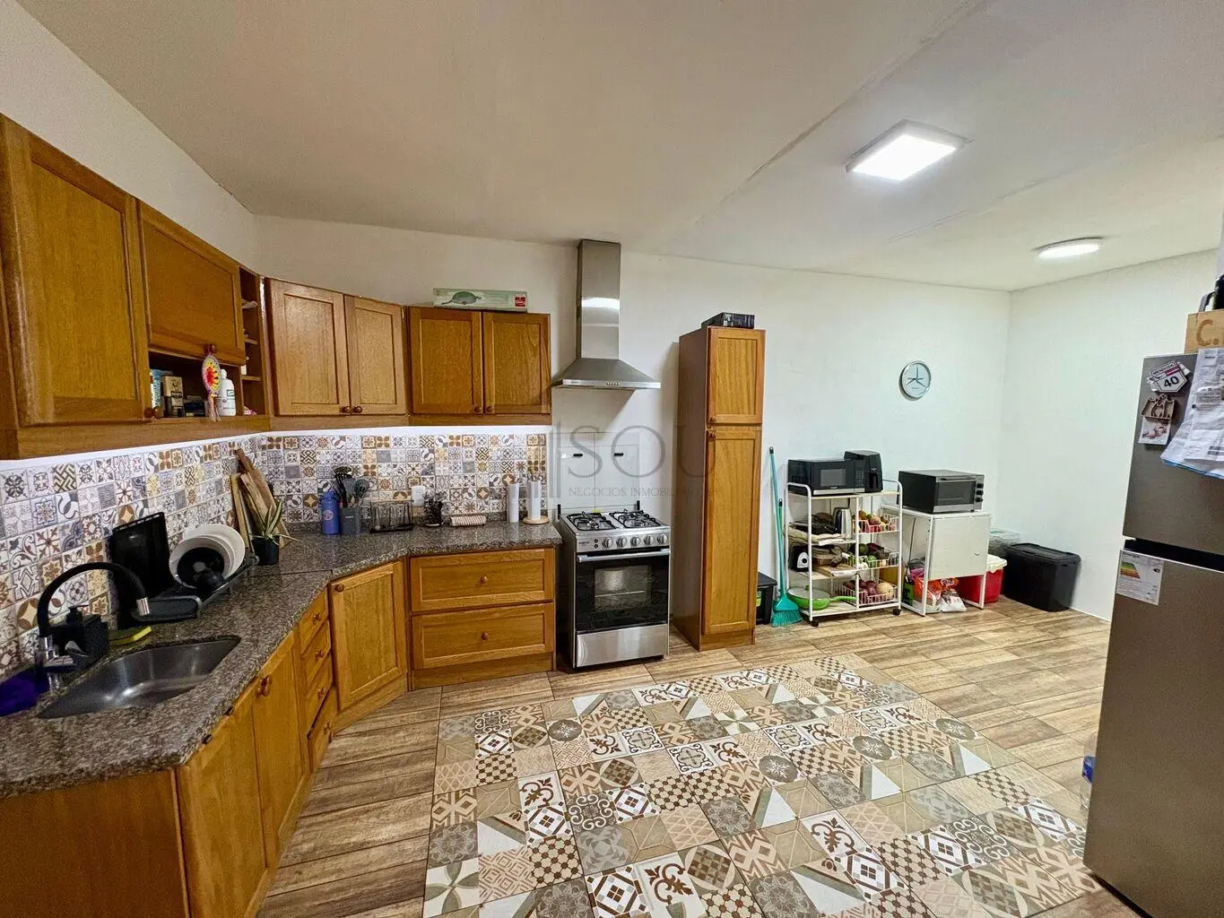 Amplia cocina con espacio de guardado.