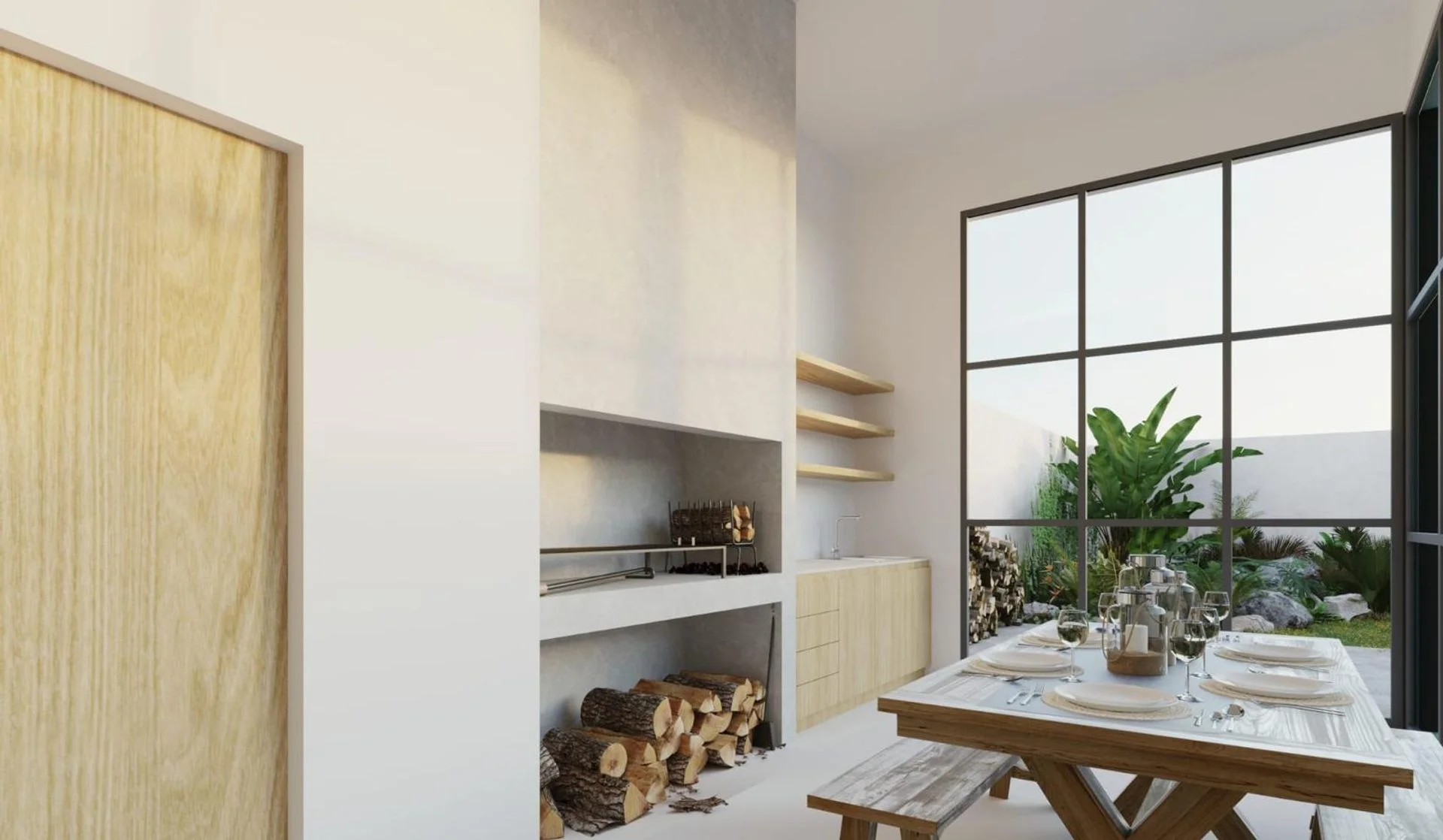 • Integración visual total entre barbacoa, jardín y estar principal