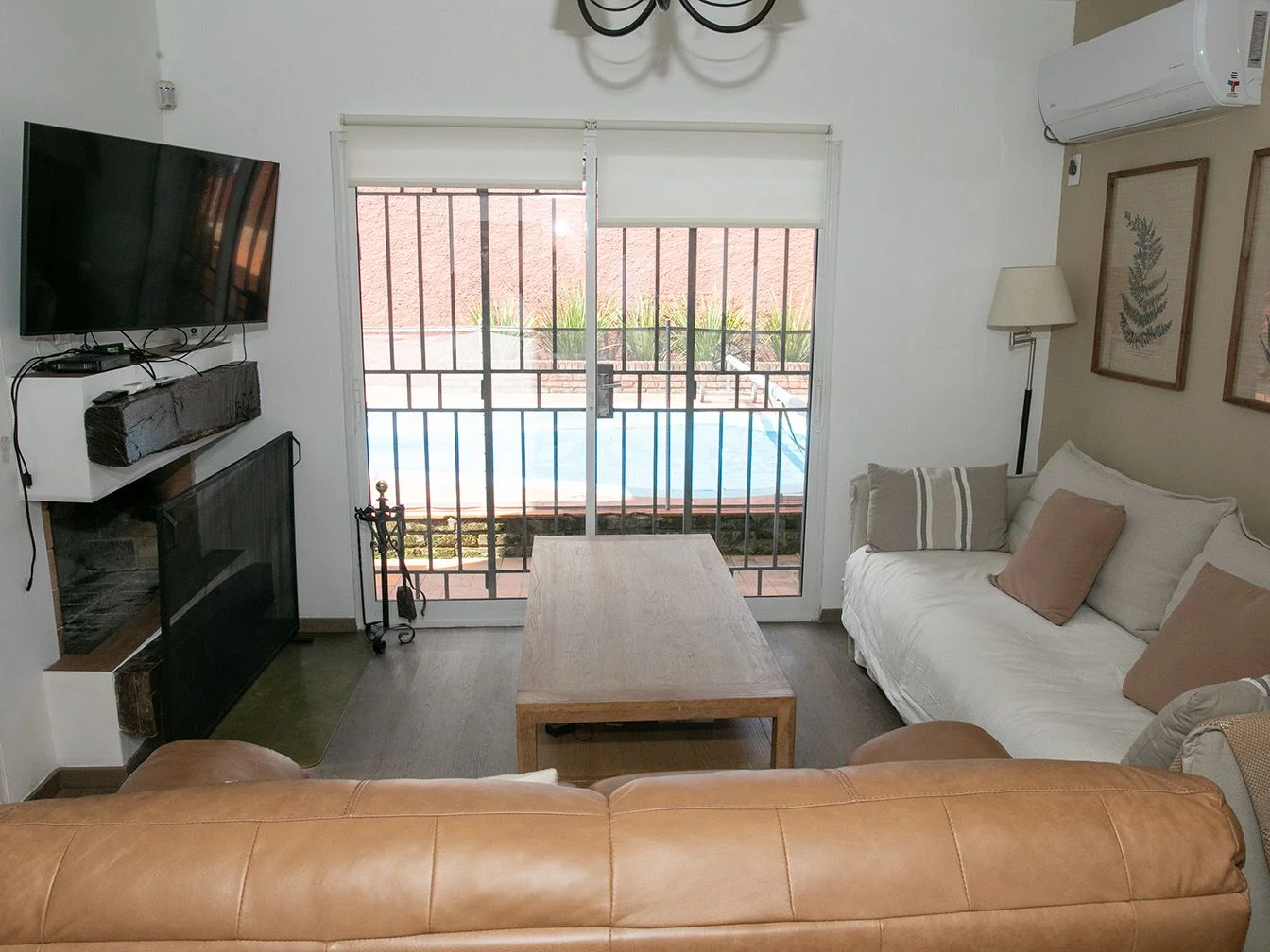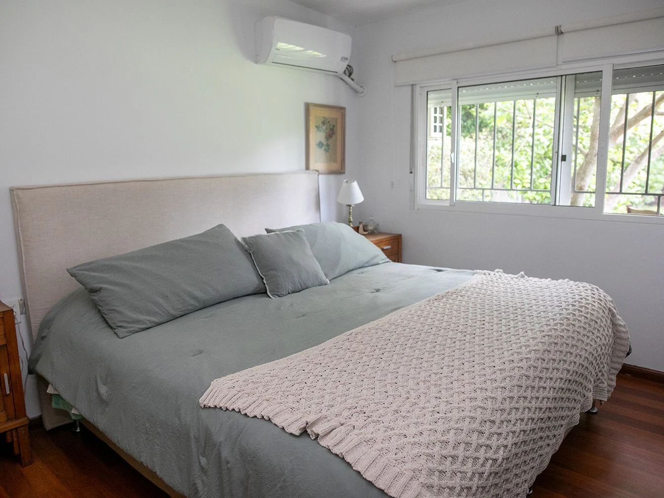 500m² de terreno y 155m² interiores desarrollados en 2 niveles. En PB living al frente, estar con estufa a leña y salida a barbacoa con parrillero al fondo. Cocina semi integrada al estar. Dormitorio principal, un baño completo. Lavadero con baño. Servicio completo. Entrada de servicio lateral. En PA dos dormitorios y un segundo baño completo. Gran jardín al frente y piscina abierta climatizada al fondo. Rejas y persianas en aberturas.
