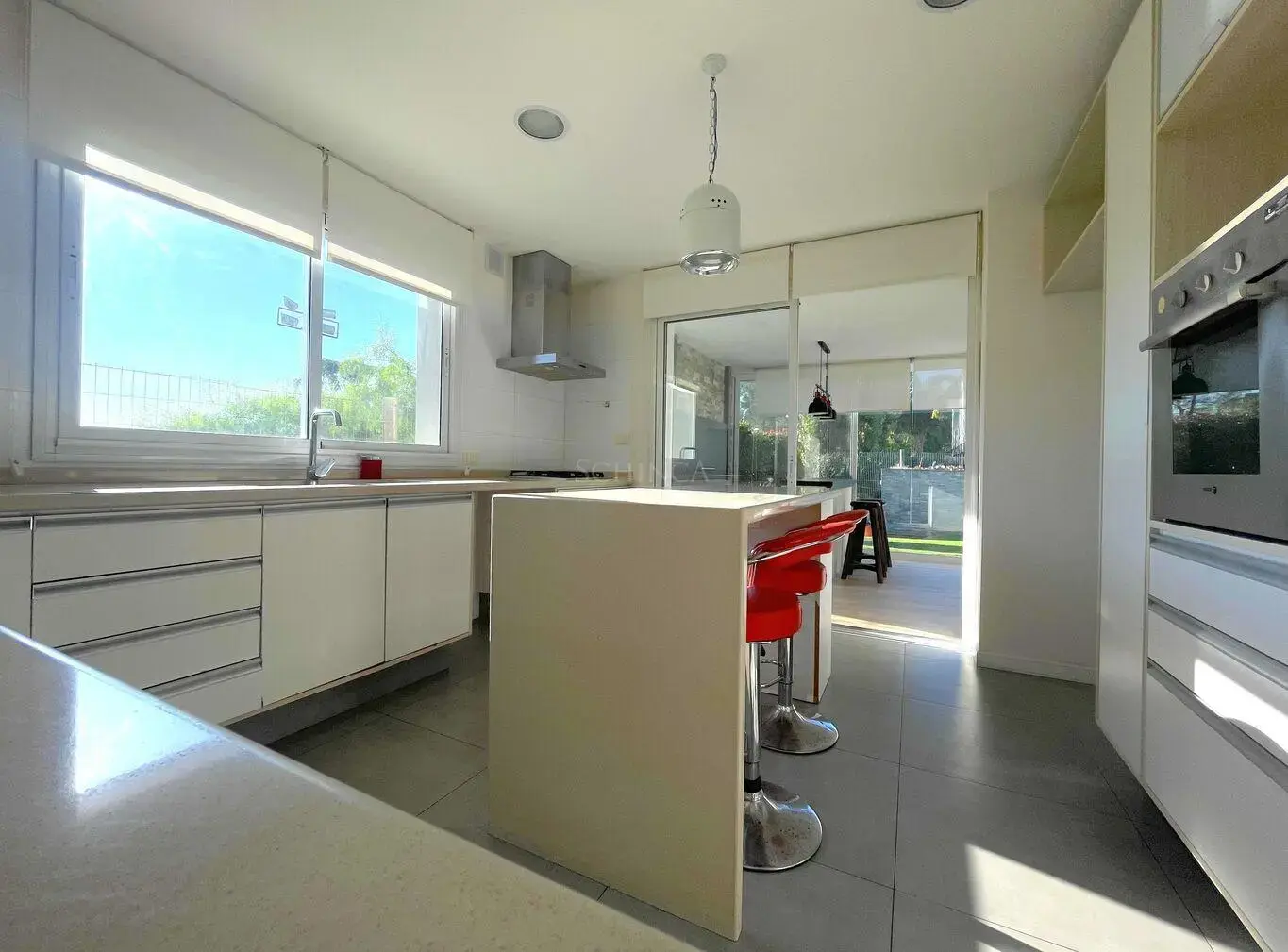 Desde el estar-comedor, se accede a la barbacoa techada , equipada con parrillero, barra y pileta, integrando el interior con el exterior de manera fluida.