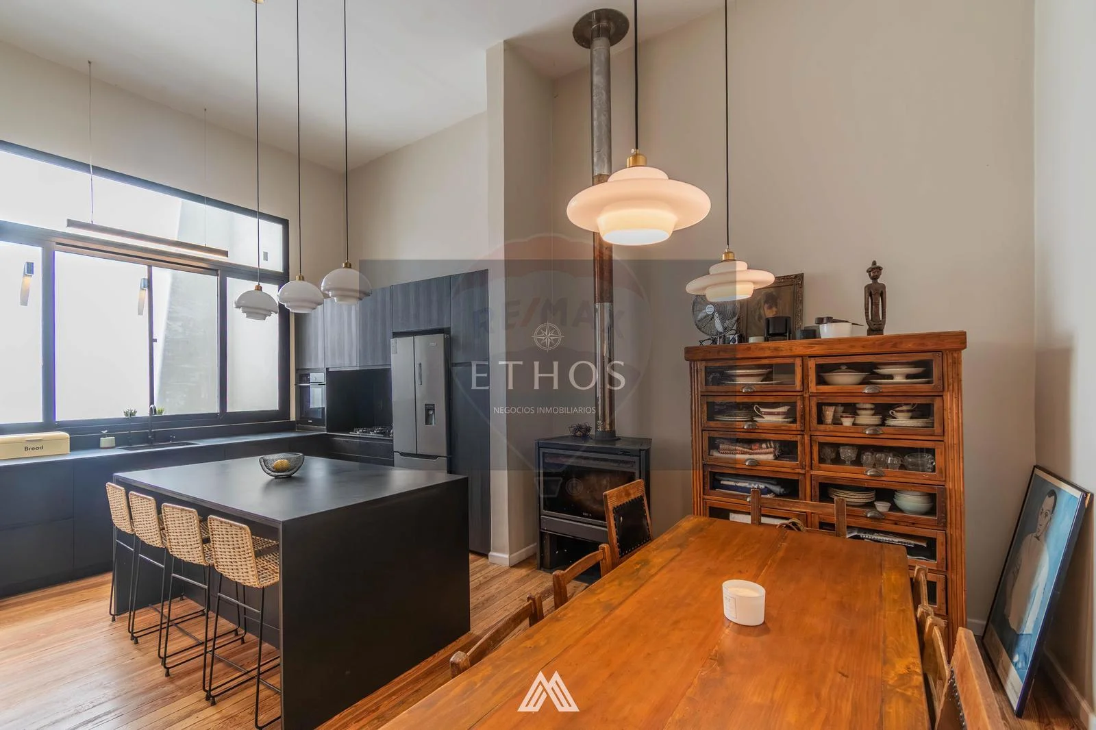 Con 208 m edificados, conserva puertas antiguas, doble altura y techos altos que aportan amplitud y luminosidad.