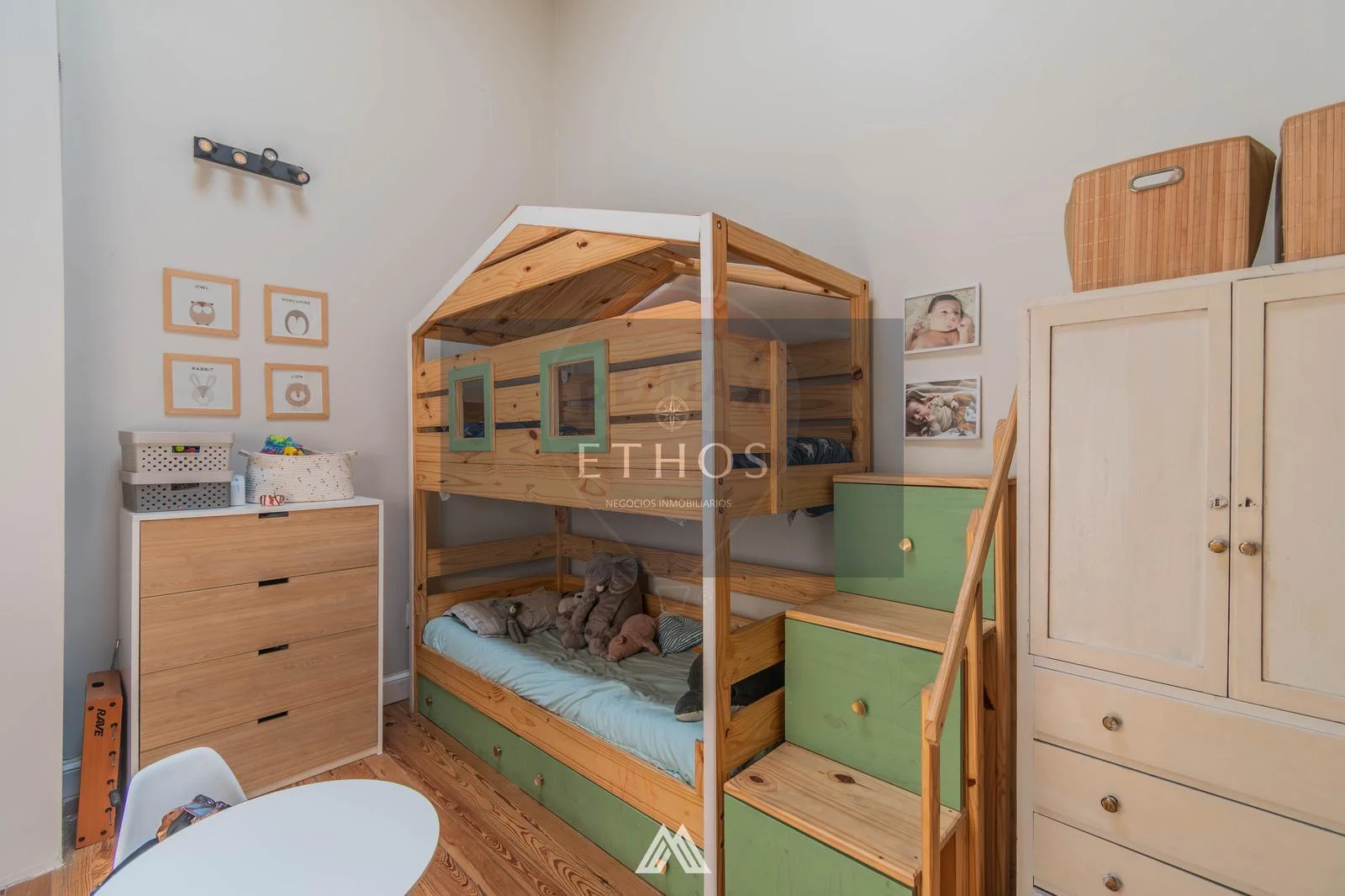 La suite principal cuenta con vestidor, baño en suite y balcón al frente. Los otros dos dormitorios comparten un baño completo y disponen de un área de lavadero definida. En este nivel también se suma un dormitorio de servicio, que amplía las posibilidades de uso de la planta.