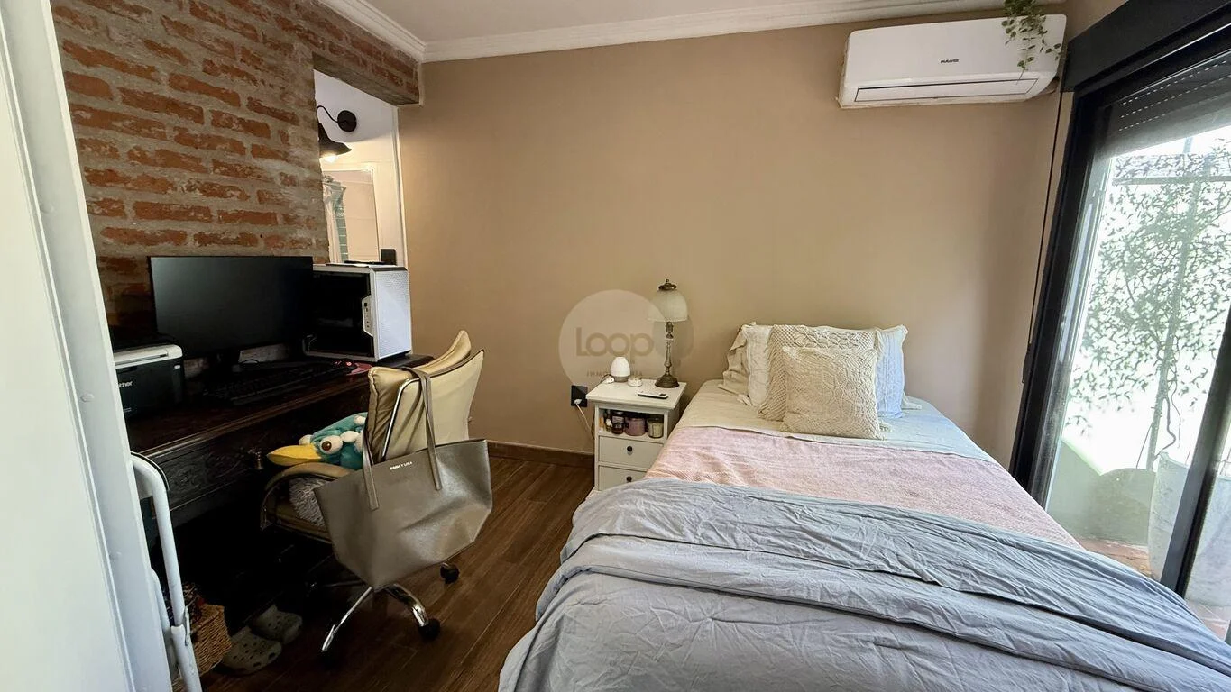 Al subir a la planta alta, la casa sigue sorprendiendo: tres dormitorios que se adaptan a distintas necesidades. Actualmente, dos de ellos están integrados, funcionando como un espacio más amplio, pero con la posibilidad clara de independizarlos y recuperar los tres dormitorios originales. Esta planta se completa con un baño completo adicional, sumando en total tres baños completos en toda la casa.