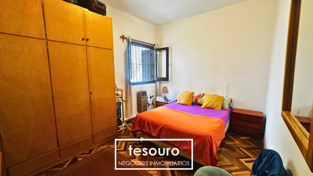 En planta baja se desarrolla el living comedor con estufa a leña y salida al patio con parrillero, cocina definida con salida al patio, dormitorio principal, dormitorio secundario y baño completo. Calefacción por gas a cañería y rejas en todas las aberturas.