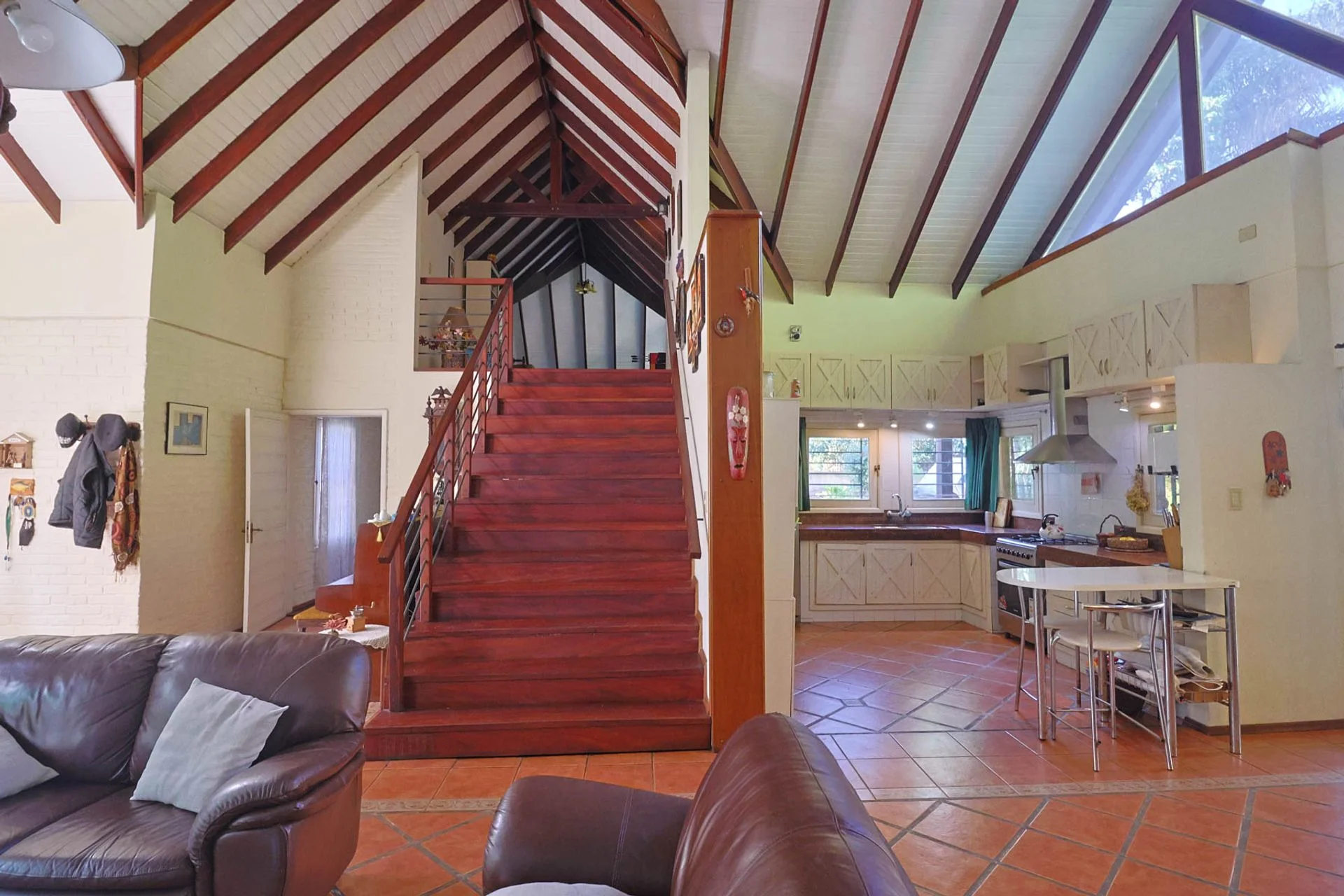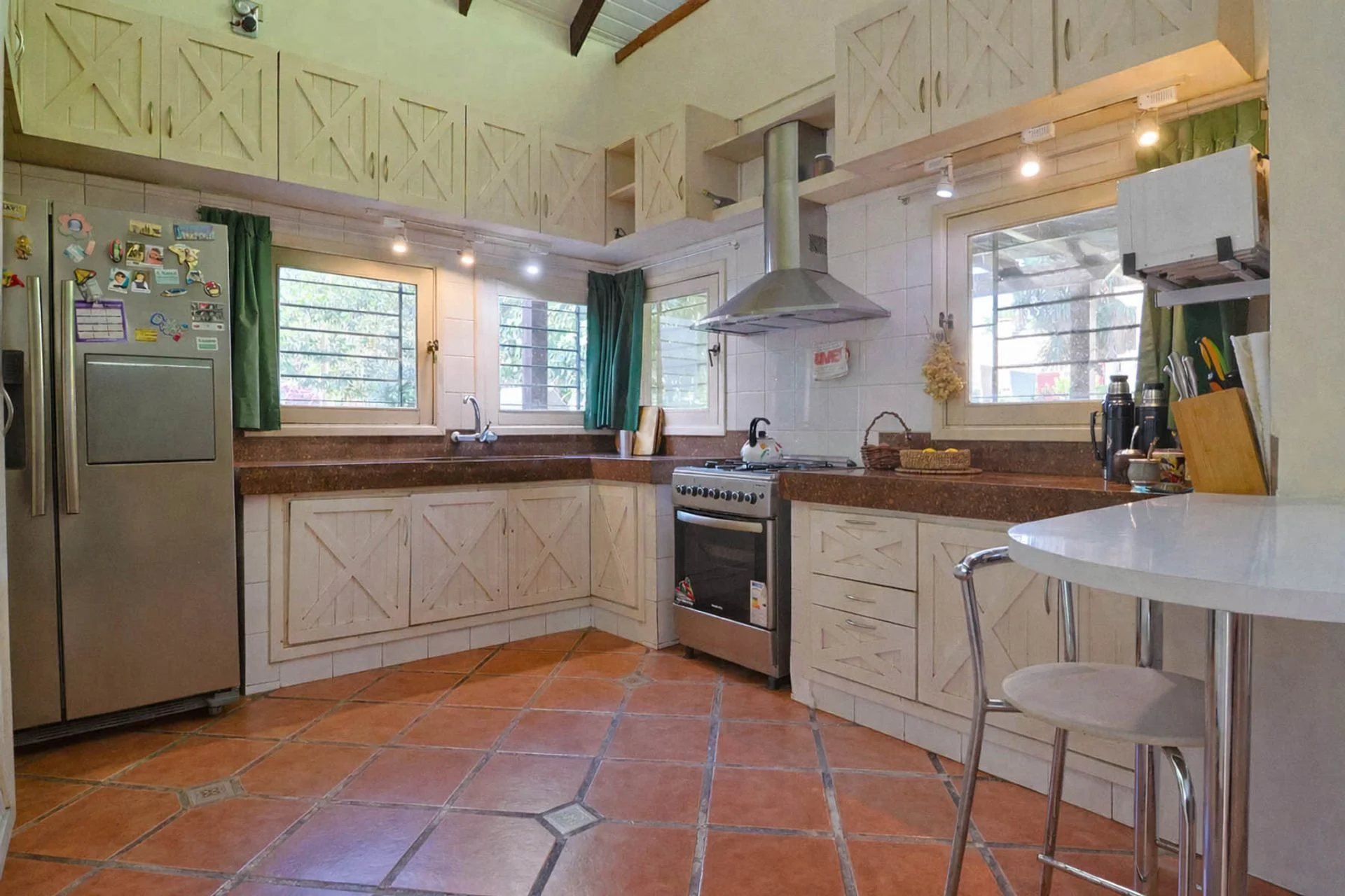 Casa tipo chalet desarrollada en dos niveles. El acceso principal conduce a un amplio living–comedor con estufa a leña, integrado a la cocina.
