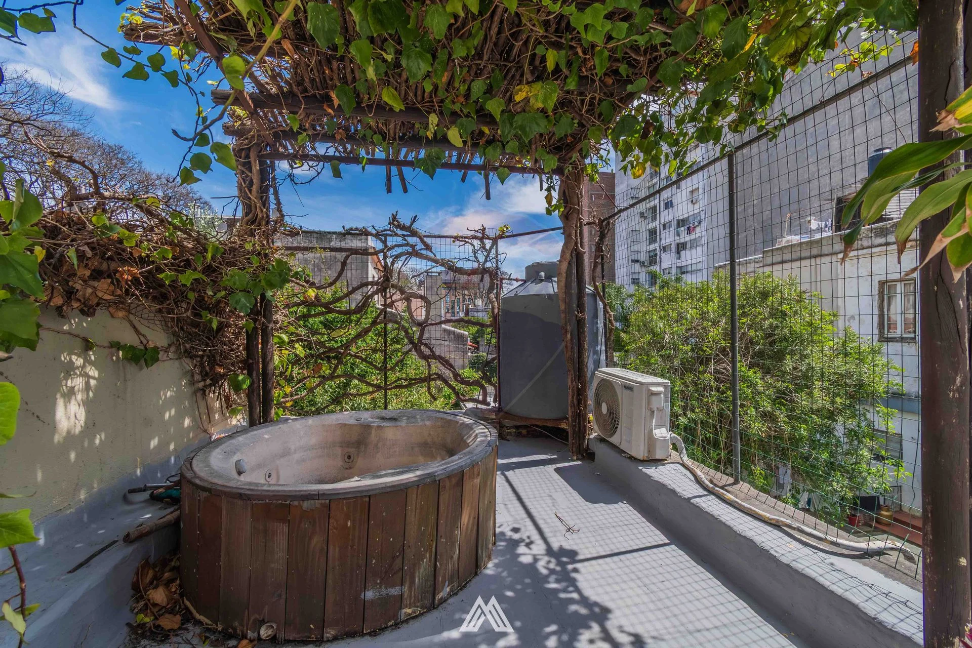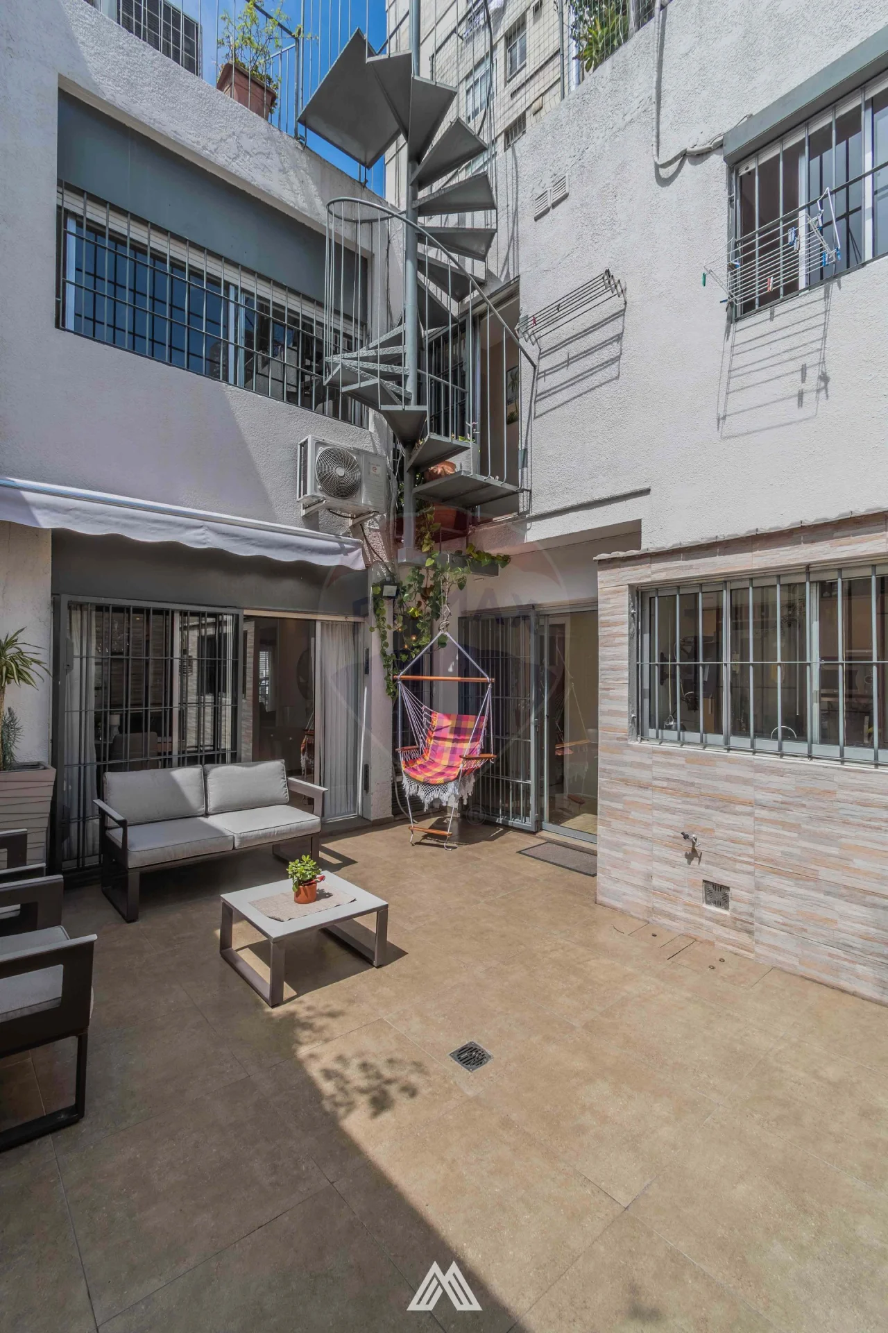 Escalera caracol mediante la cual se accede a azotea de 105 m2 con jacuzzi.