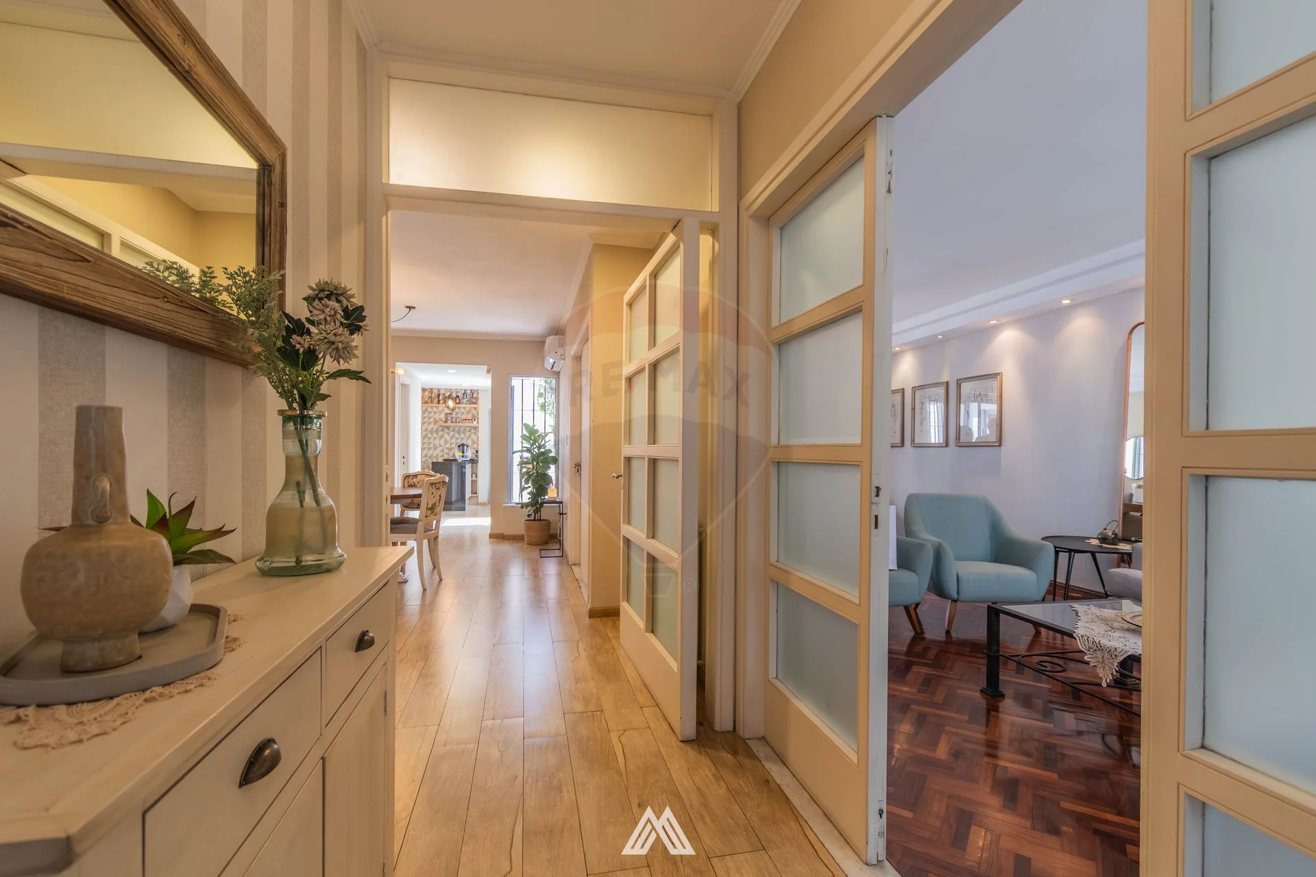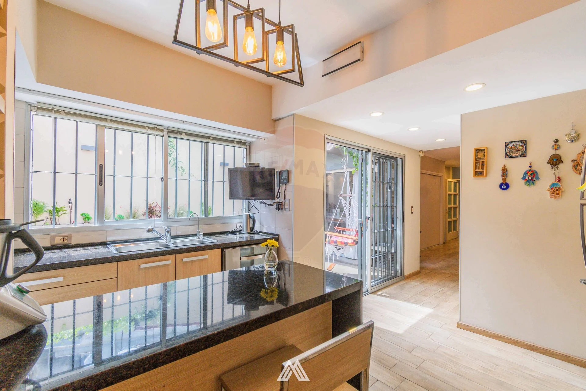 Accedemos a hall de distribución, amplio y luminoso living comedor y moderna área de estar con baño social. Cocina con isla, de la cual destacamos su cómoda funcionalidad para el día a día.