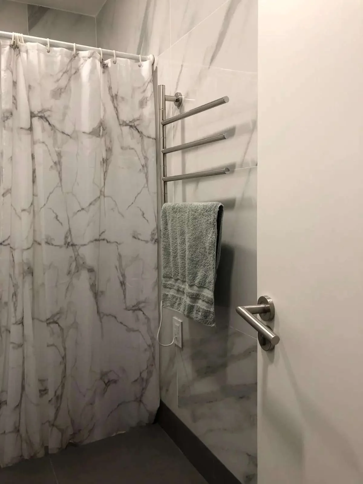 Calefón a gas con cañería que abastece de agua caliente a la cocina y los dos baños.