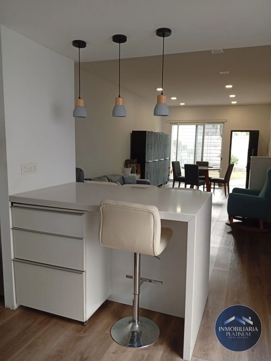 Se ingresa a la propiedad desde el jardín directo a un gran living comedor integrado a la cocina, por donde se llega al fondo.