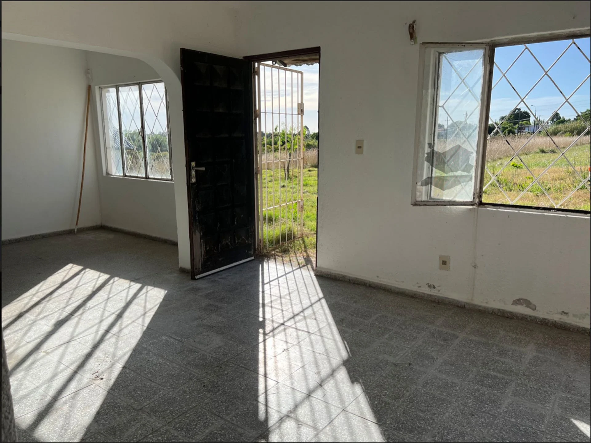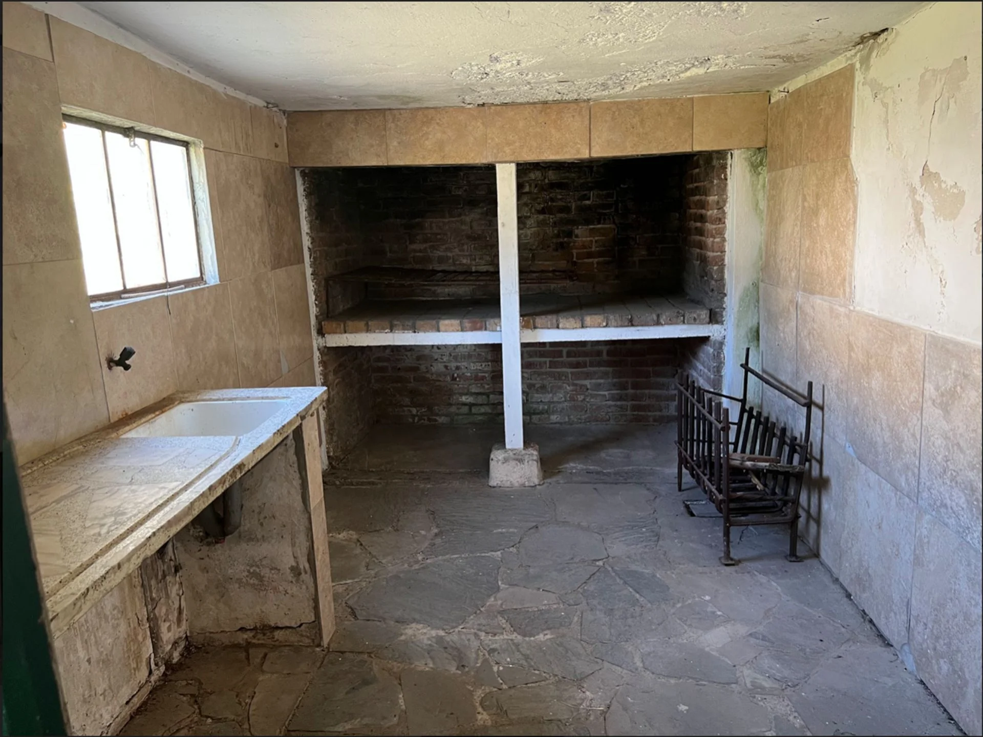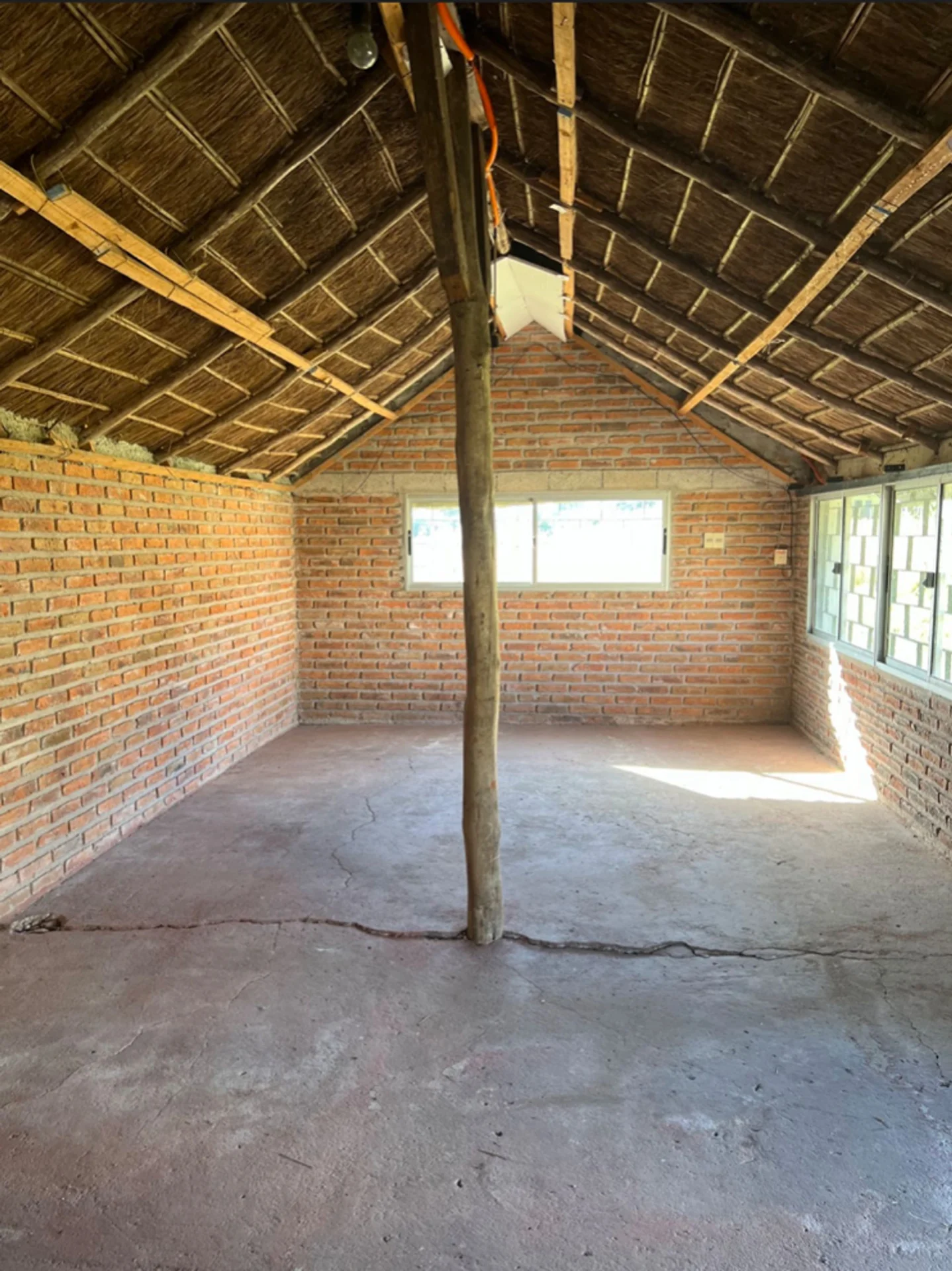 A unos metros de la casa hay un Quincho de 35 m2 con gran parrilla y otro baño completo. Tiene techo de paja nuevo y arriba una chapa que lo protege, paredes de ladrillo y ventanales de aluminio con rejas. Piso y pared con rajaduras a arreglar.