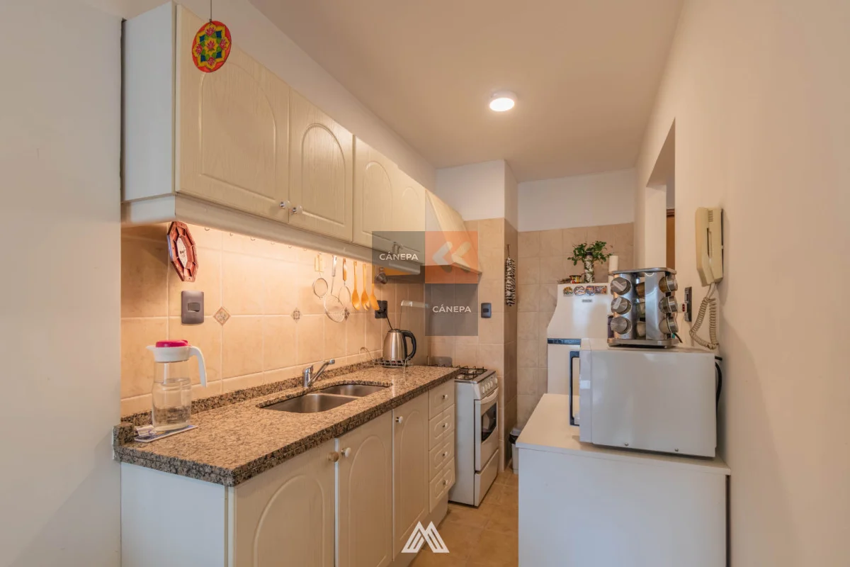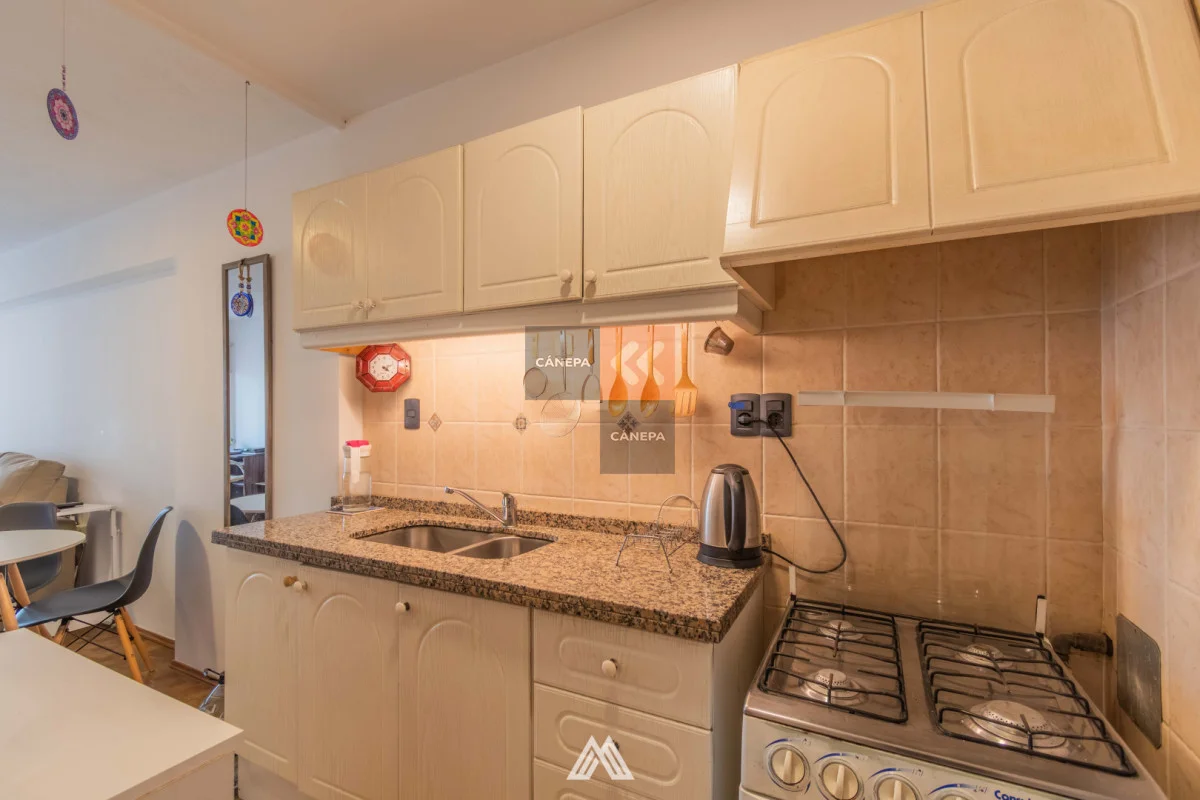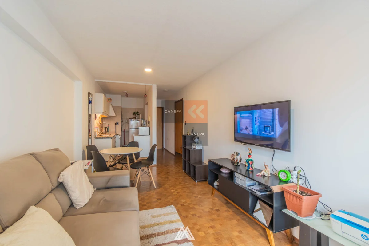 Living comedor con salida a terraza al frente Cocina semiintegrada con placares sobre y bajo mesada 1 dormitorio con salida a balcón y placard 1 baño completo Actualmente alquilado a $23.000. Edificio cuenta con calefacción central a gas, portería 24 hs, ascensores y parrillero de uso común. Referencia Interna : Tera-3382