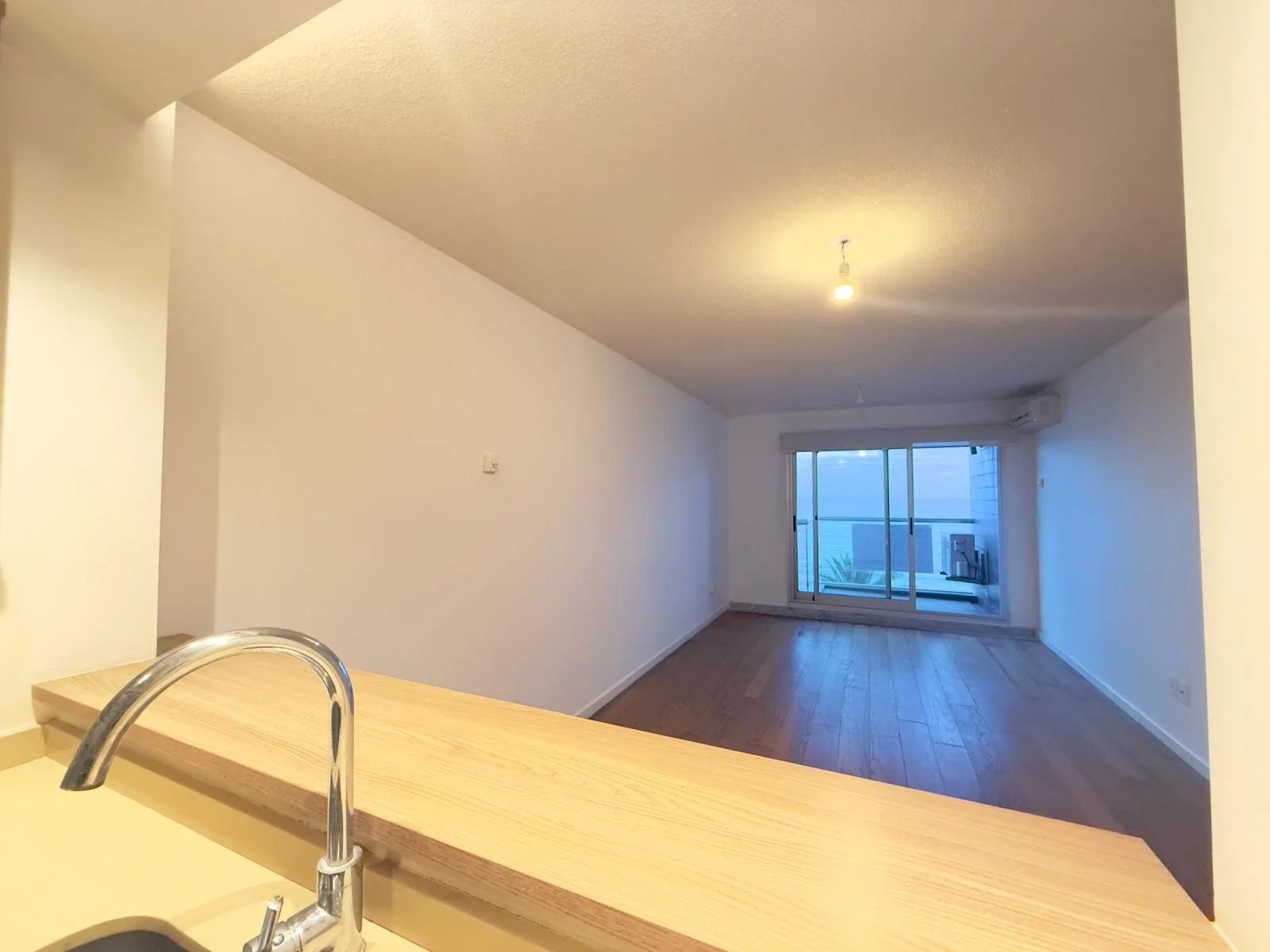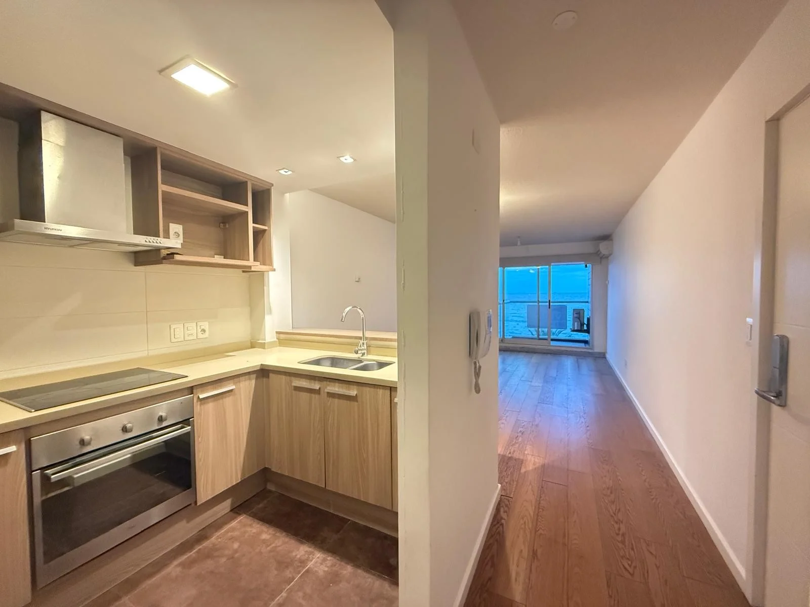 Segundo Baño completo, con Calefón Cocina semi equipada con muebles sobre y bajo mesada. anafe, horno y campana extractora, cocina integrada al living comedor con aire acondicionado, salida a terraza principal con vista al mar.