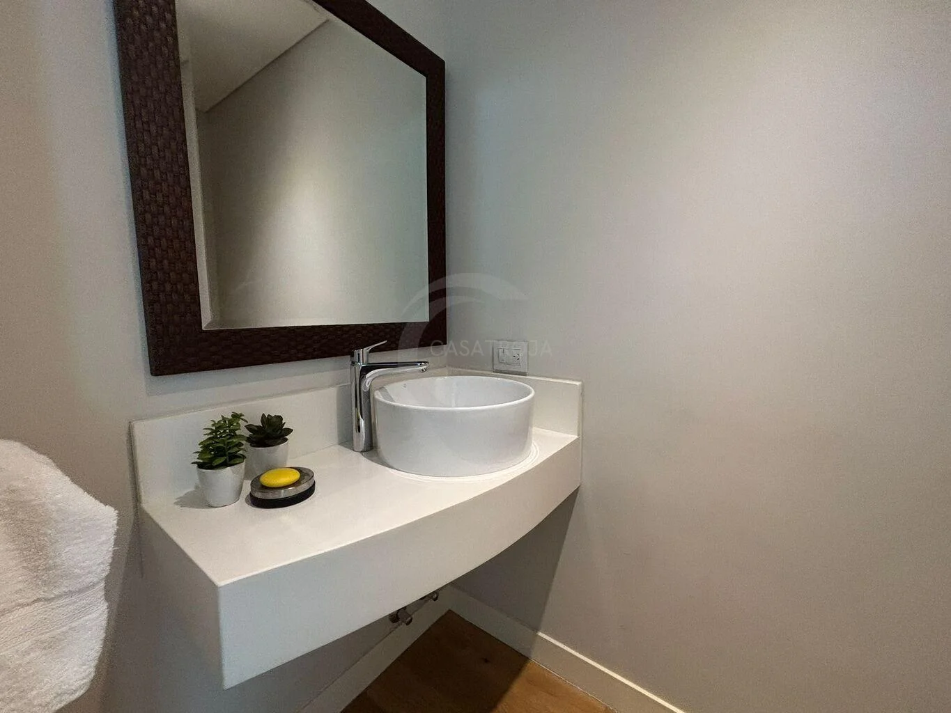 La unidad cuenta con 1 dormitorio en suite con cama King y somier Español. Amplios placards con interiores de Todesquini.