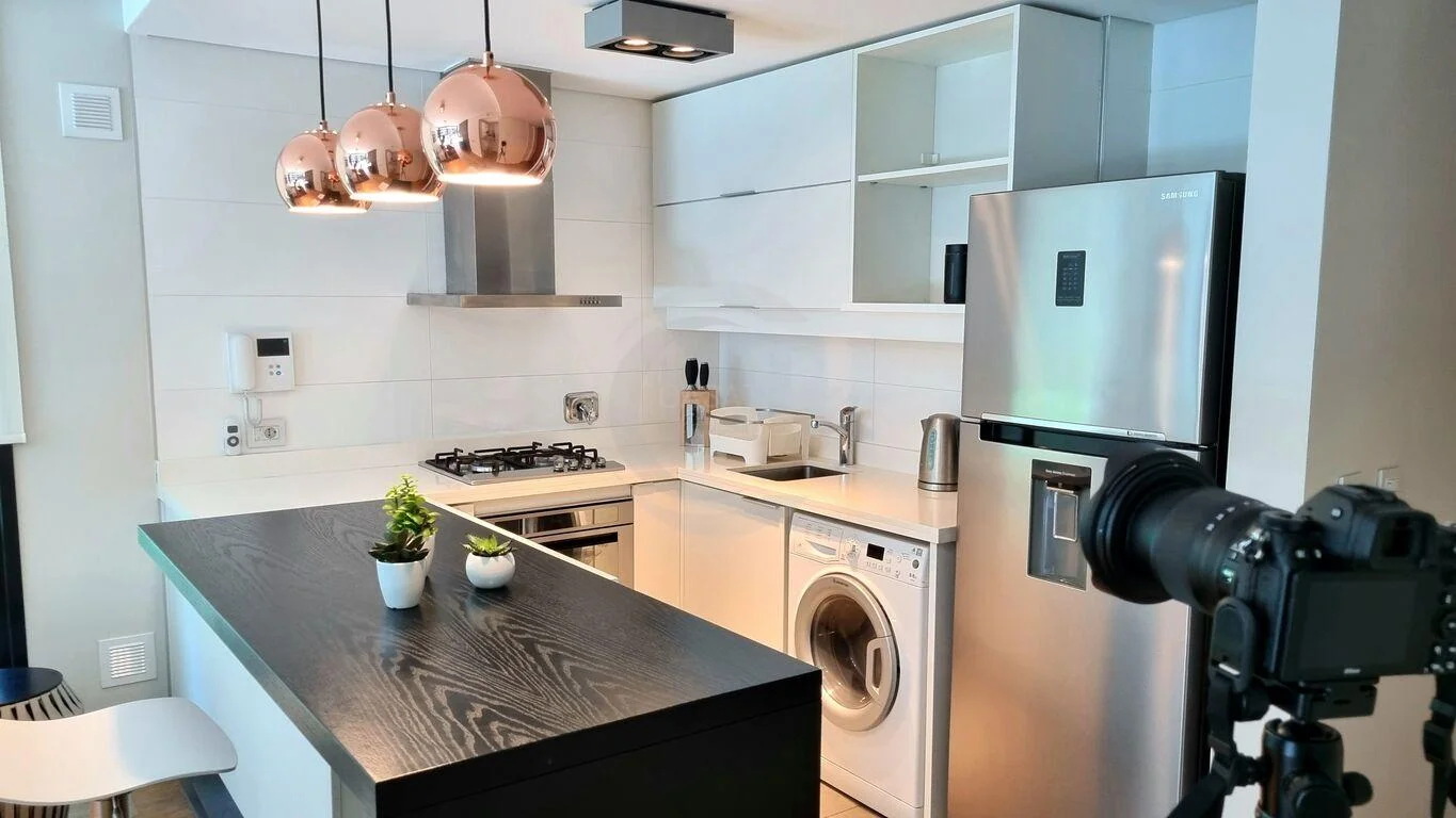 La cocina es realmente muy cómoda. Desde el upgrade de su horno, su heladera Samsung con máquina de hielo, lava-secarropas (atípico y muy conveniente), todo pero todo en esta unidad es de un nivel Premium.